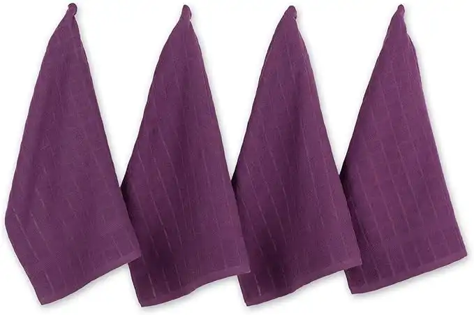 (2 products)DII Windowpane Dishtowel Set, Cotton, Eggplant Solid, 16x26