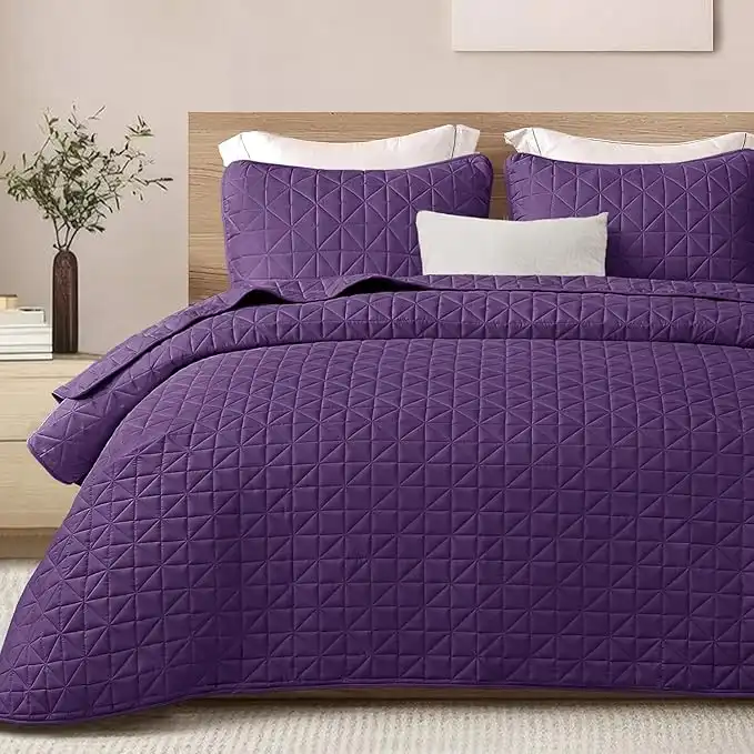 Exclusivo Mezcla 3-Piece Queen Size Quilt Set with Pillow Shams, Grid Quilted Bedspread/Coverlet/Bed Cover(96x88 Inches, Purple) -Soft, Lightweight and Reversible