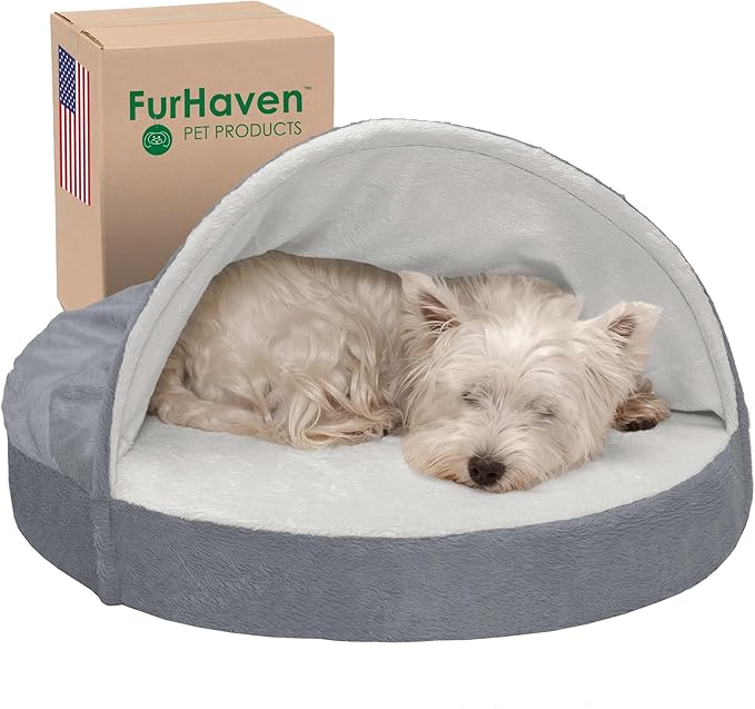 Furhaven Cooling Gel Foam Pet Bed for Dogs and Cats - Microvelvet Snuggery Blanket Burrow Nest Dog Bed with Removable Washable Cover, Silver, 26-Inch