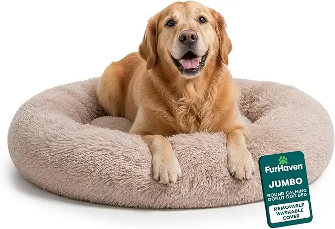 Furhaven Plush Long Faux Fur Ultra Calming Donut Dog Bed (X-Large)