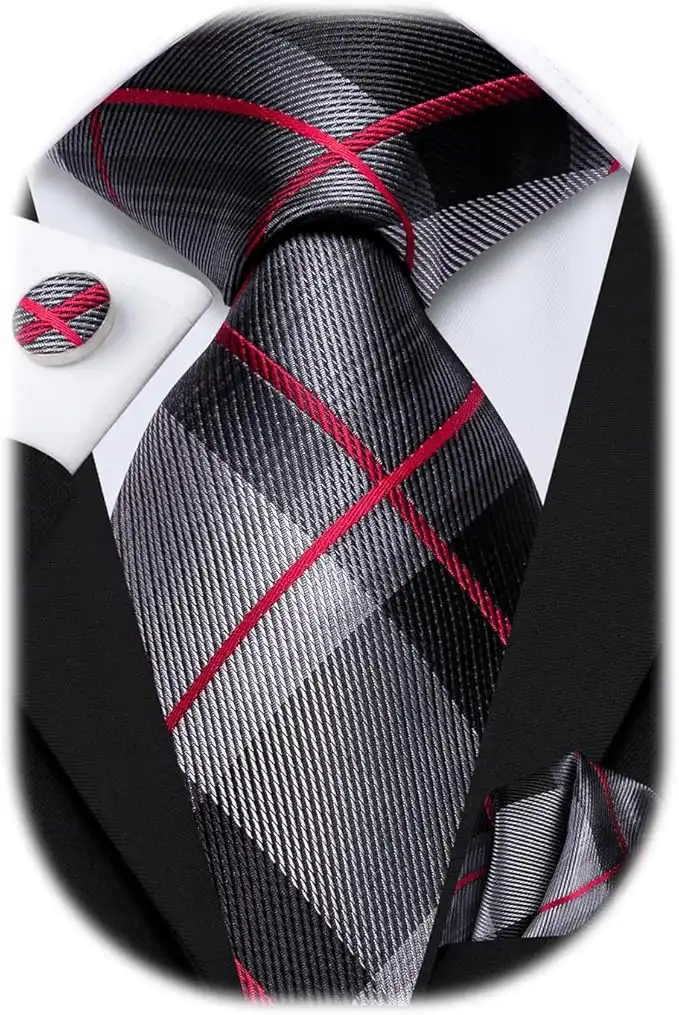Hi-Tie Silk Paisley Necktie and Pocket Square Cufflinks Set