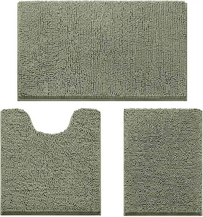 HOMEIDEAS 3-Piece Chenille Bathroom Rug Set