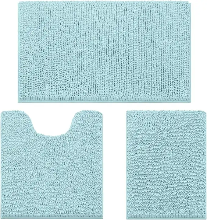 (6 products)HOMEIDEAS 3 Pieces Bathroom Rugs, Ultra Soft Non Slip Absorbent Chenille Toilet Bath Mat Set (Light Blue)