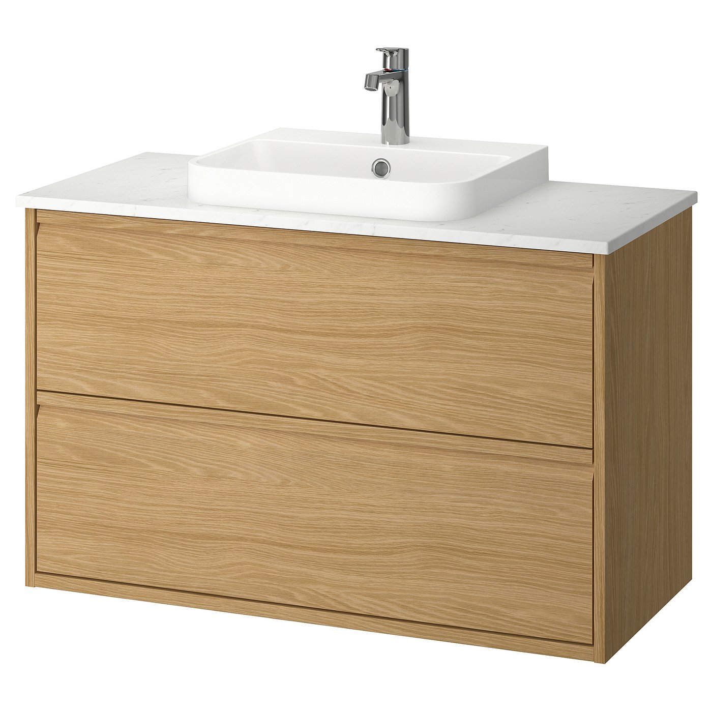 (7 products)ÄNGSJÖN / BACKSJÖN Wash-stnd w drawers/wash-basin/tap - oak effect/white marble effect 102x49x71 cm
