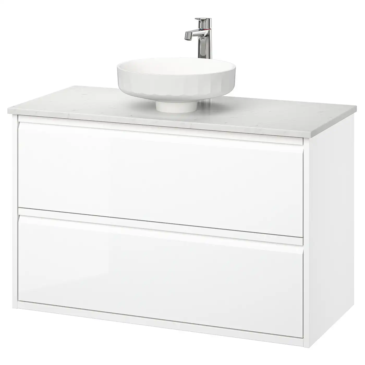 (2 products)ÄNGSJÖN / LERSJÖN Wash-stnd w drawers/wash-basin/tap - oak effect/white marble effect 102x49x79 cm