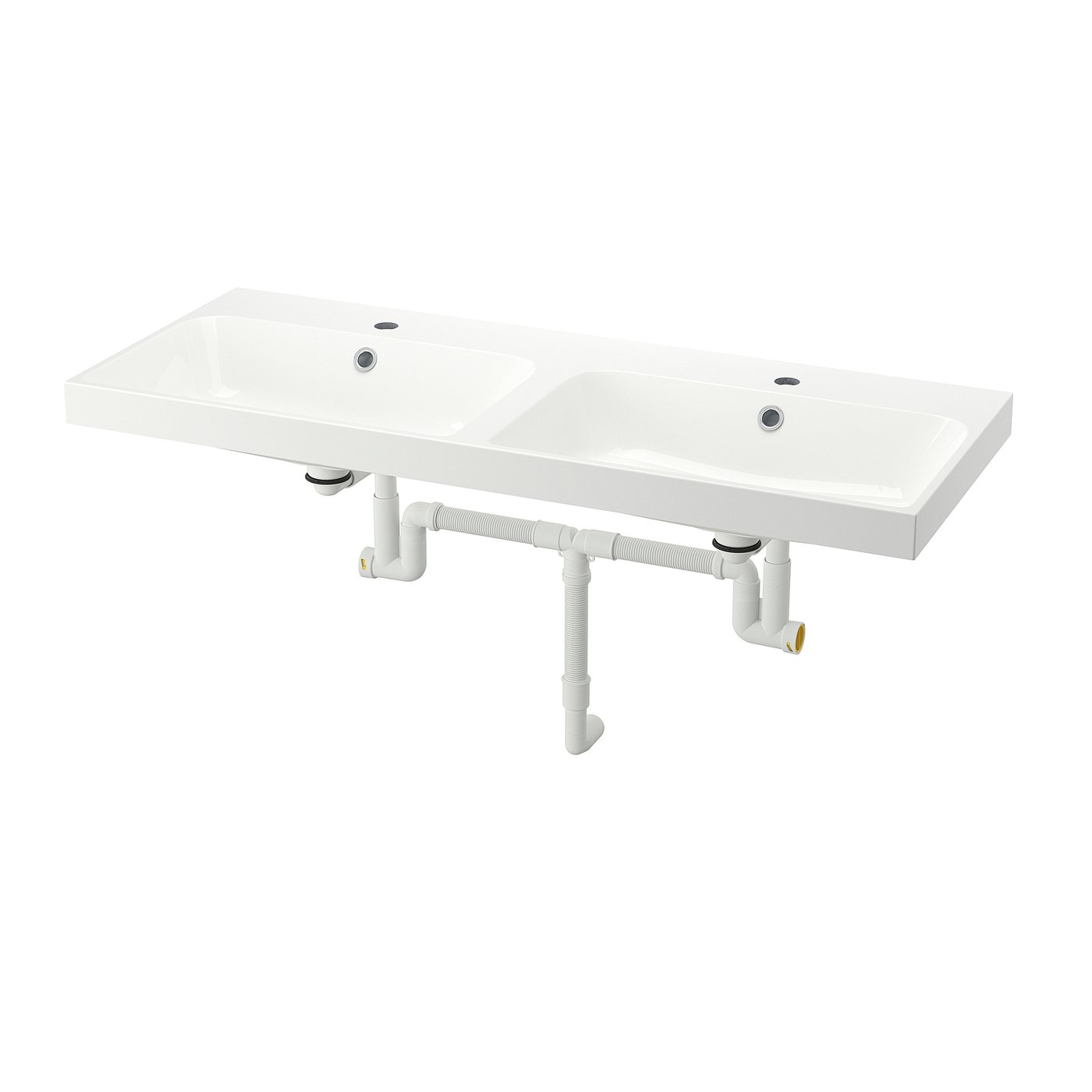 (1 product)BACKSJÖN Double wash-basin with water trap - white 120x48 cm