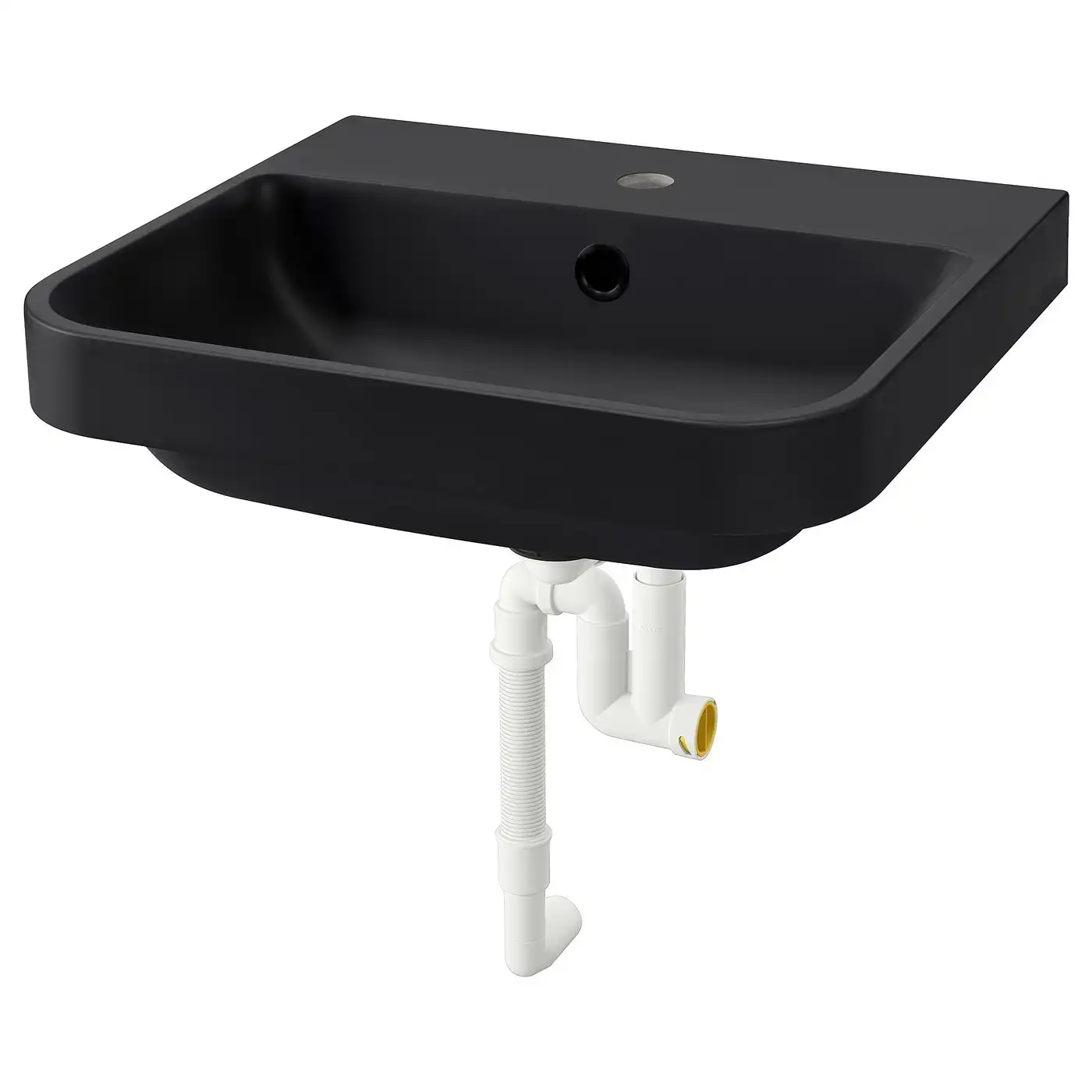 (2 products)BACKSJÖN Semi-recessed wash-basin w watr trp - black 50x43 cm