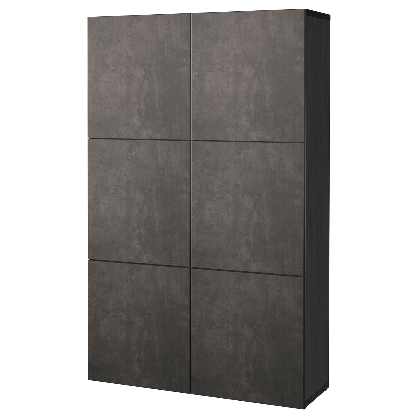 IKEA BESTÅ Storage combination with doors 120x42x193 cm black-brown/Kallviken dark grey concrete effect