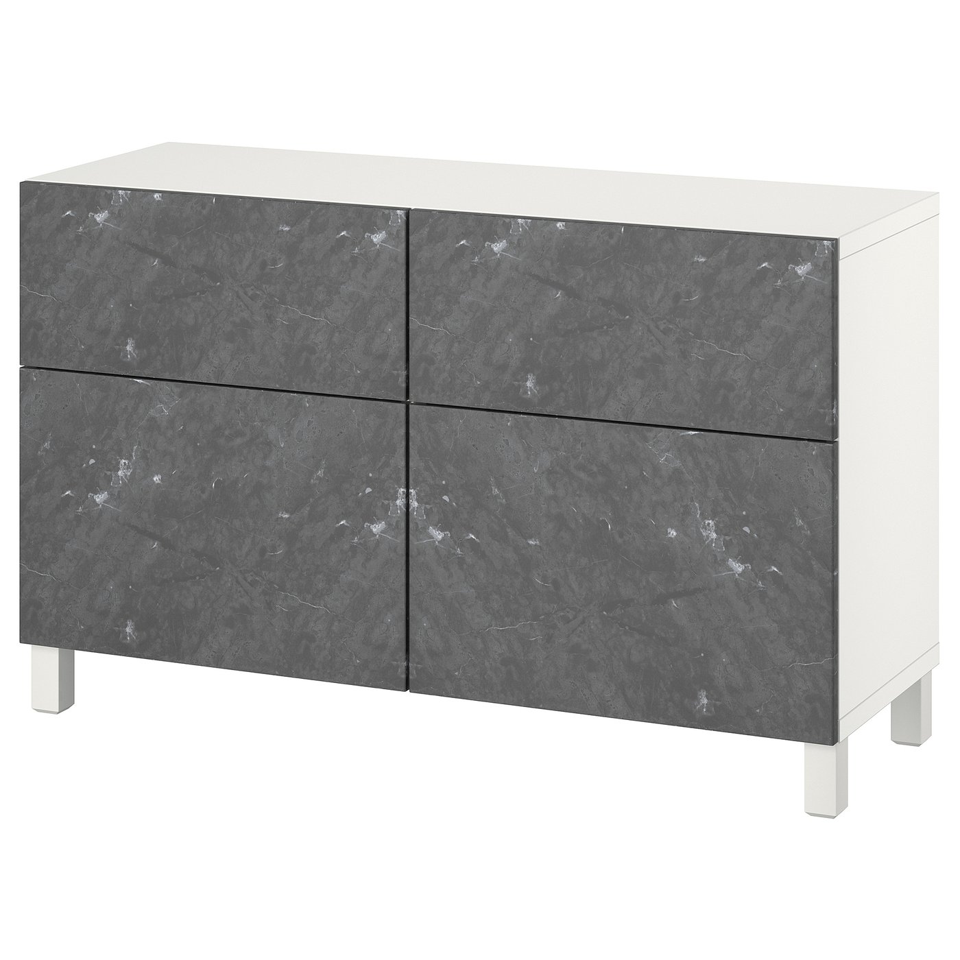 IKEA BESTÅ Storage combination with doors/drawers 120x42x74 cm Bergsviken/Stubbarp black marble effect