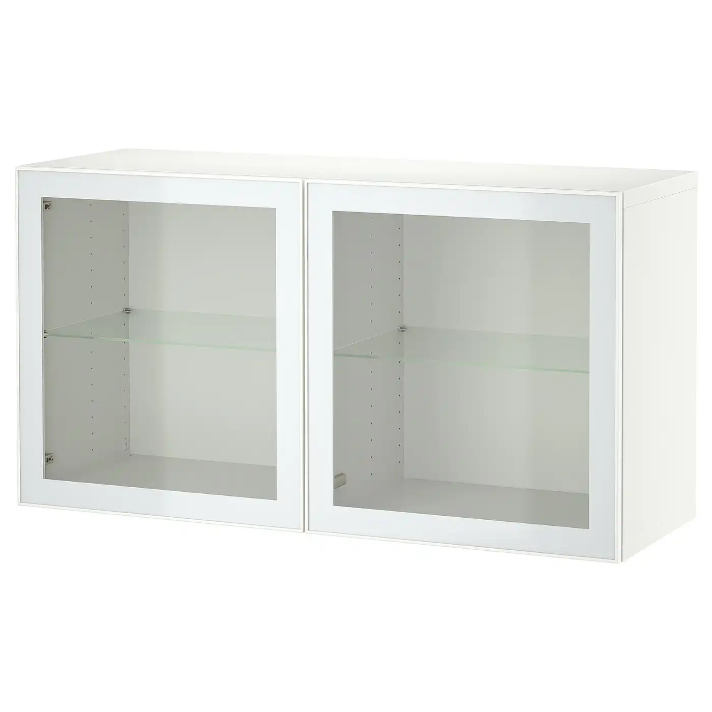(2 products)BESTÅ Wall-mounted cabinet combination - white Glassvik/white/light green frosted glass 120x42x64 cm