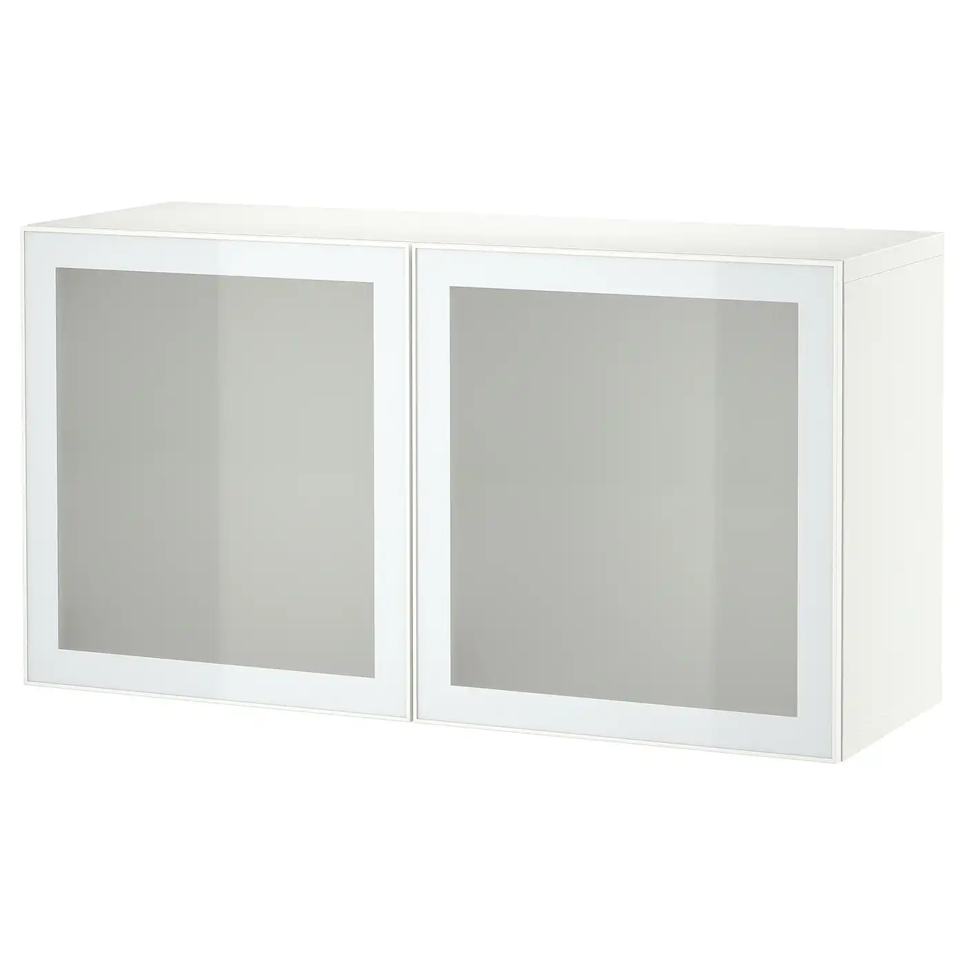 IKEA BESTÅ Wall-mounted cabinet combination 120x42x64 cm Glassvik/white/light green frosted glass