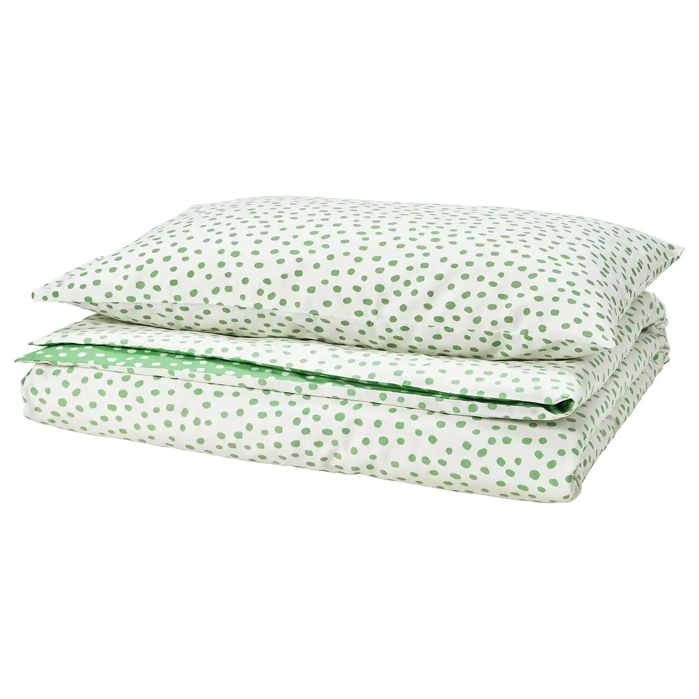 (2 products)BJÖRKGRÅMAL Duvet cover and pillowcase - green white/dotted 150x200/50x80 cm