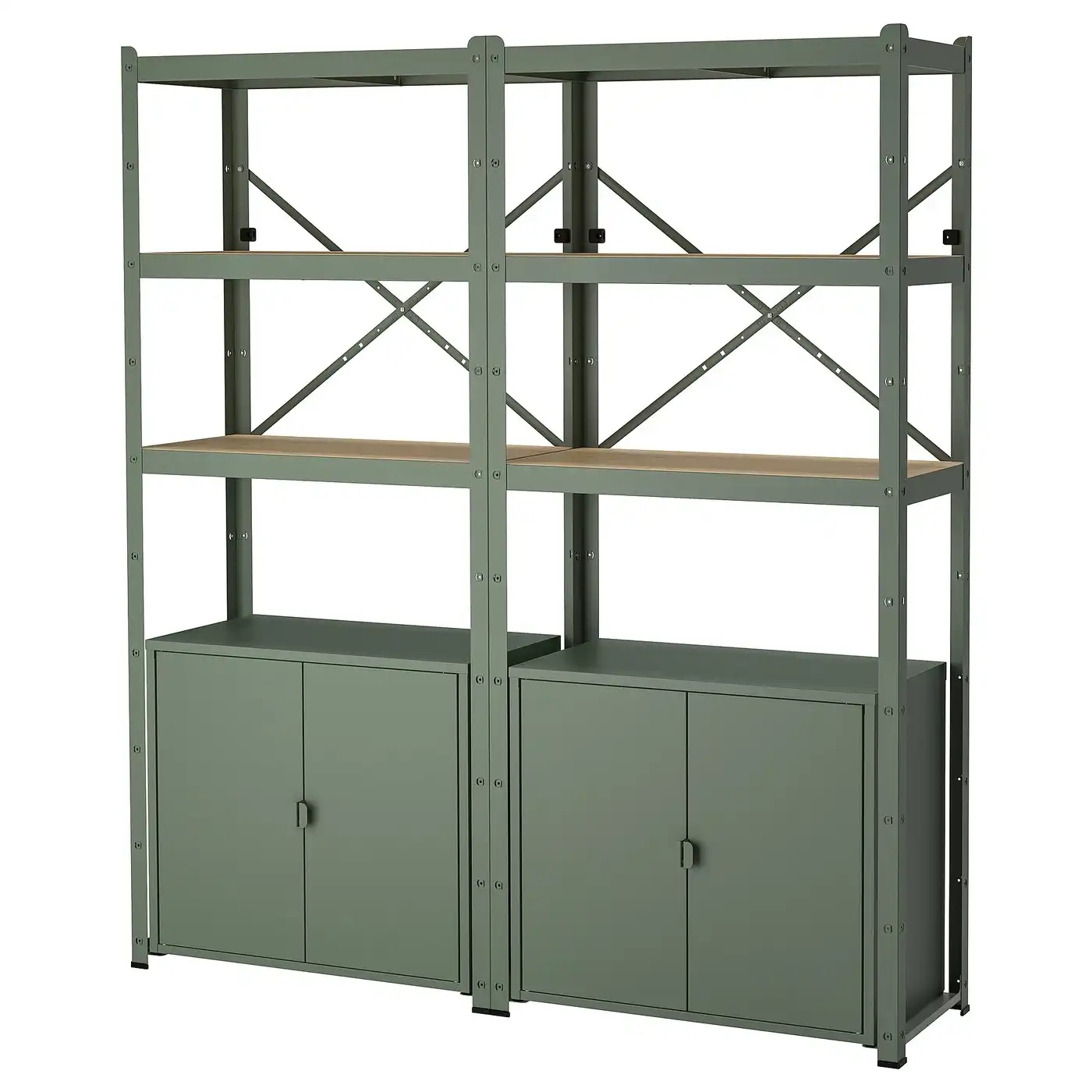 (3 products)BROR Shelving unit with cabinets - grey-green/pine plywood 170x40x190 cm