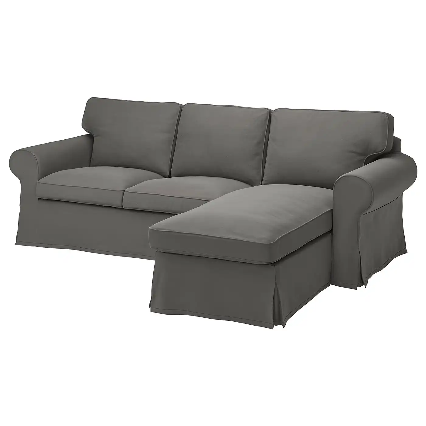 EKTORP 3-seat sofa with chaise longue - Hakebo dark grey