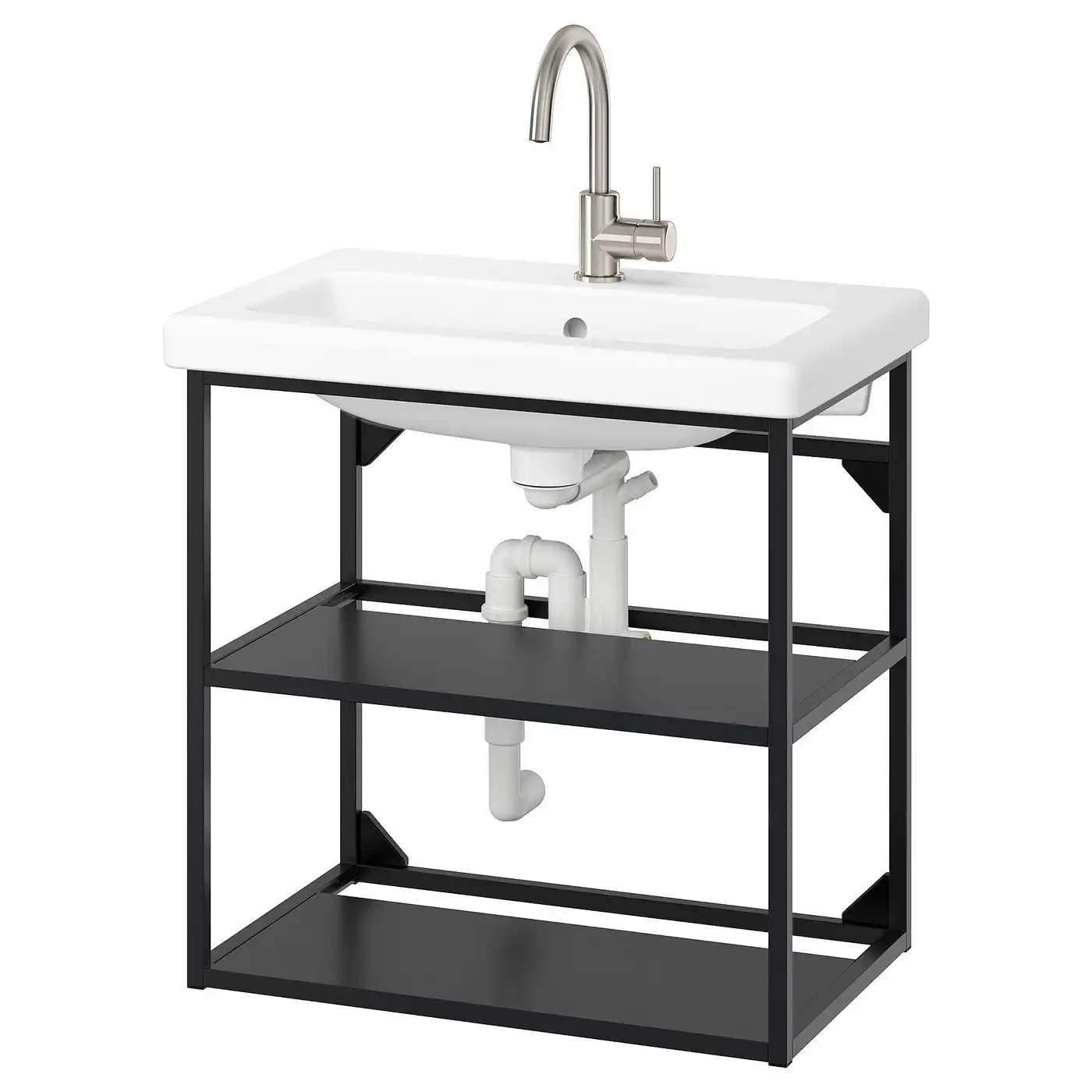 ENHET / TVÄLLEN Open wash-stand with 2 shelves - anthracite 64x43x65 cm