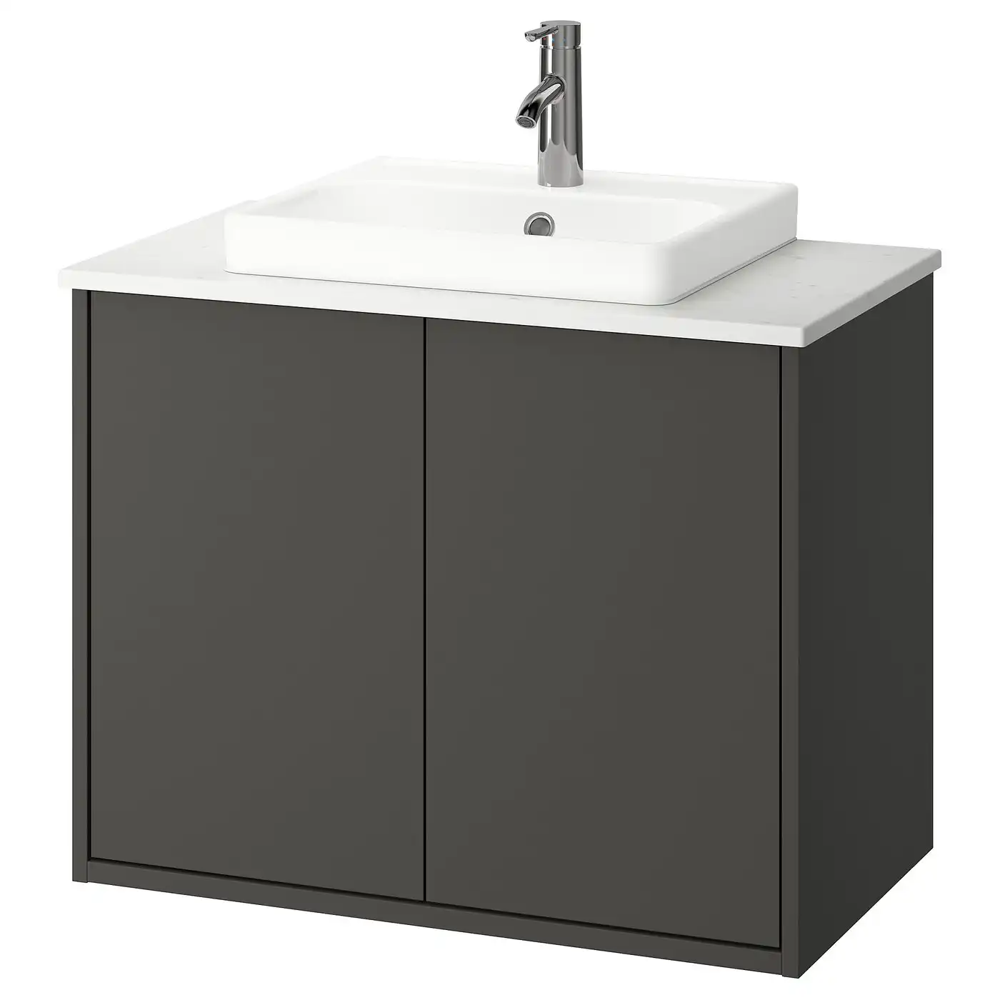 HAVBÄCK / ORRSJÖN Wash-stnd w doors/wash-basin/tap - dark grey/white marble effect 82x49x71 cm