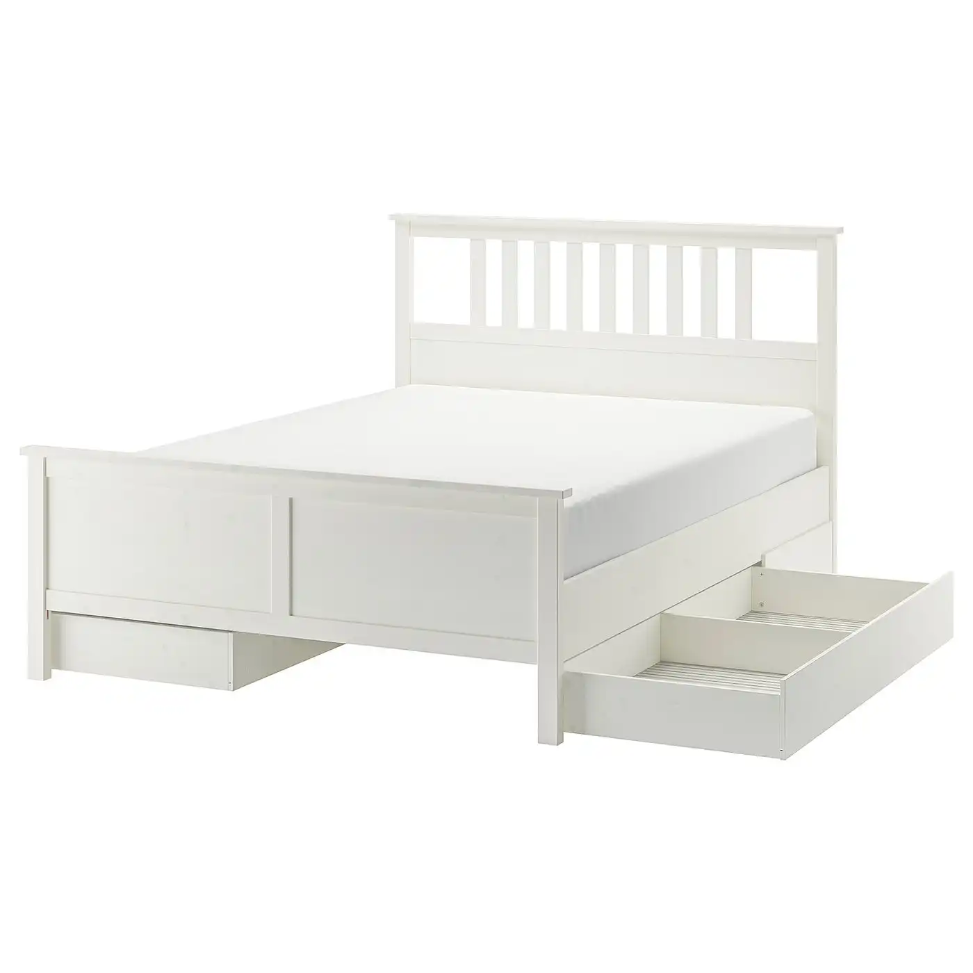 HEMNES Bed frame with 4 storage boxes - white stain/Lindbåden 160x200 cm