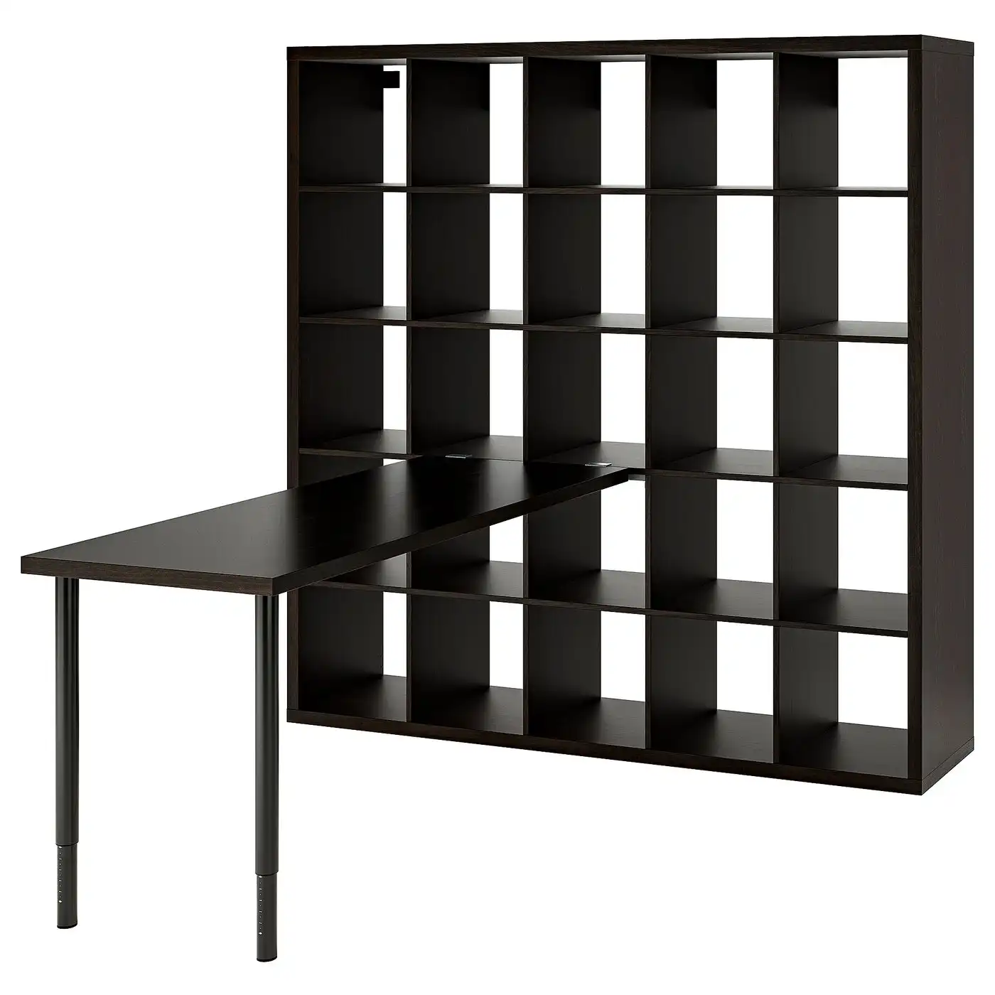 KALLAX / LAGKAPTEN Desk combination - black/black-brown 182x179x182 cm