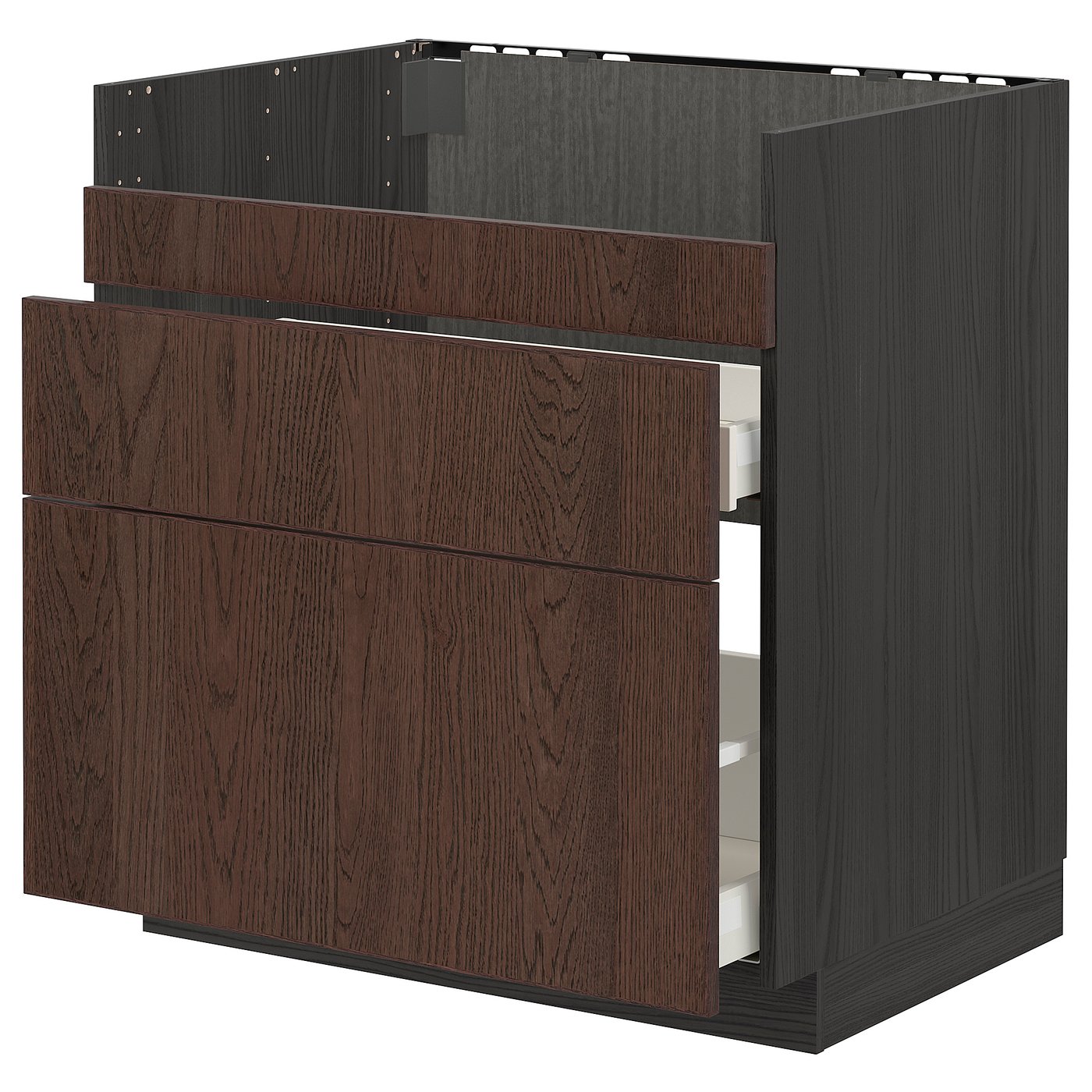 (1 product)METOD Base cb f HAVSEN snk/3 frnts/2 drws - black/Sinarp brown 80x60 cm
