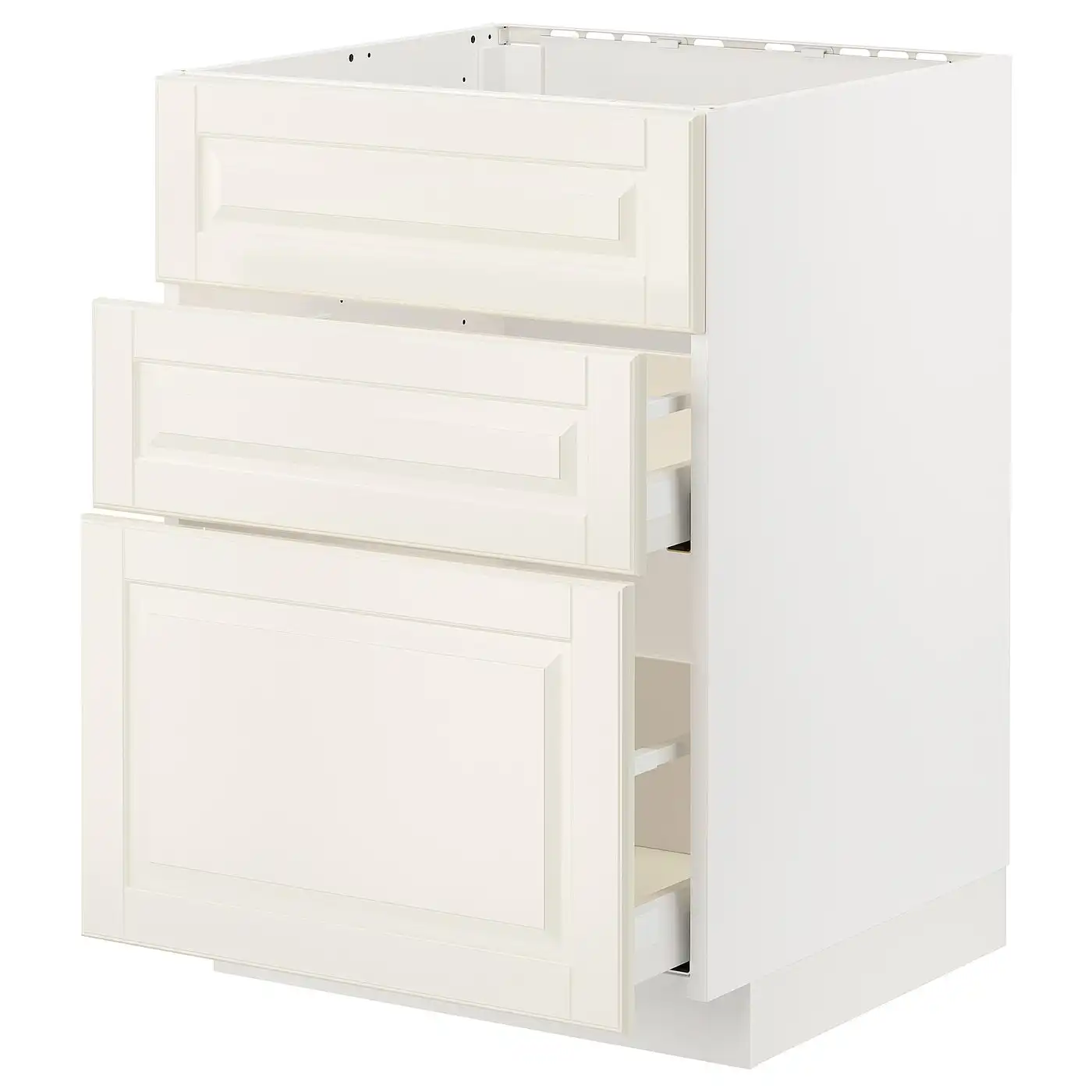 IKEA METOD Base cabinet for hob with internal extractor and drawer 60x60 cm MAXIMERA white/BODBYN off-white