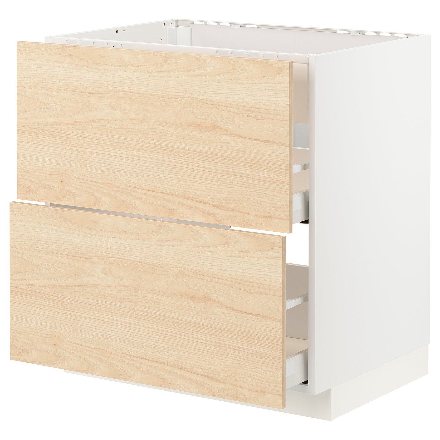 IKEA METOD Base cabinet for hob with internal extractor and drawer 80x60 cm MAXIMERA white/ASKERSUND light ash effect