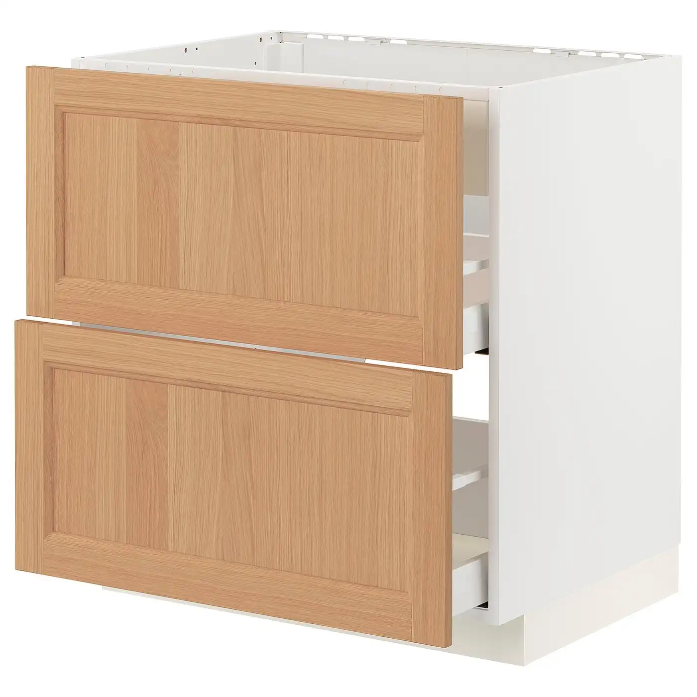 IKEA METOD Base cabinet for hob with internal extractor and drawer 80x60 cm MAXIMERA white/VOXTORP oak effect