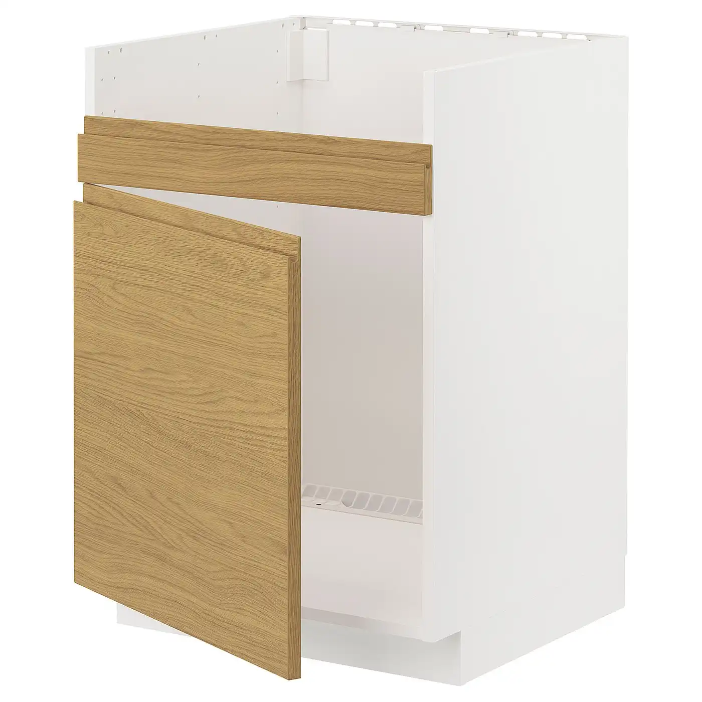 IKEA METOD Base cabinet for sink 60x60 cm white/VOXTORP oak effect