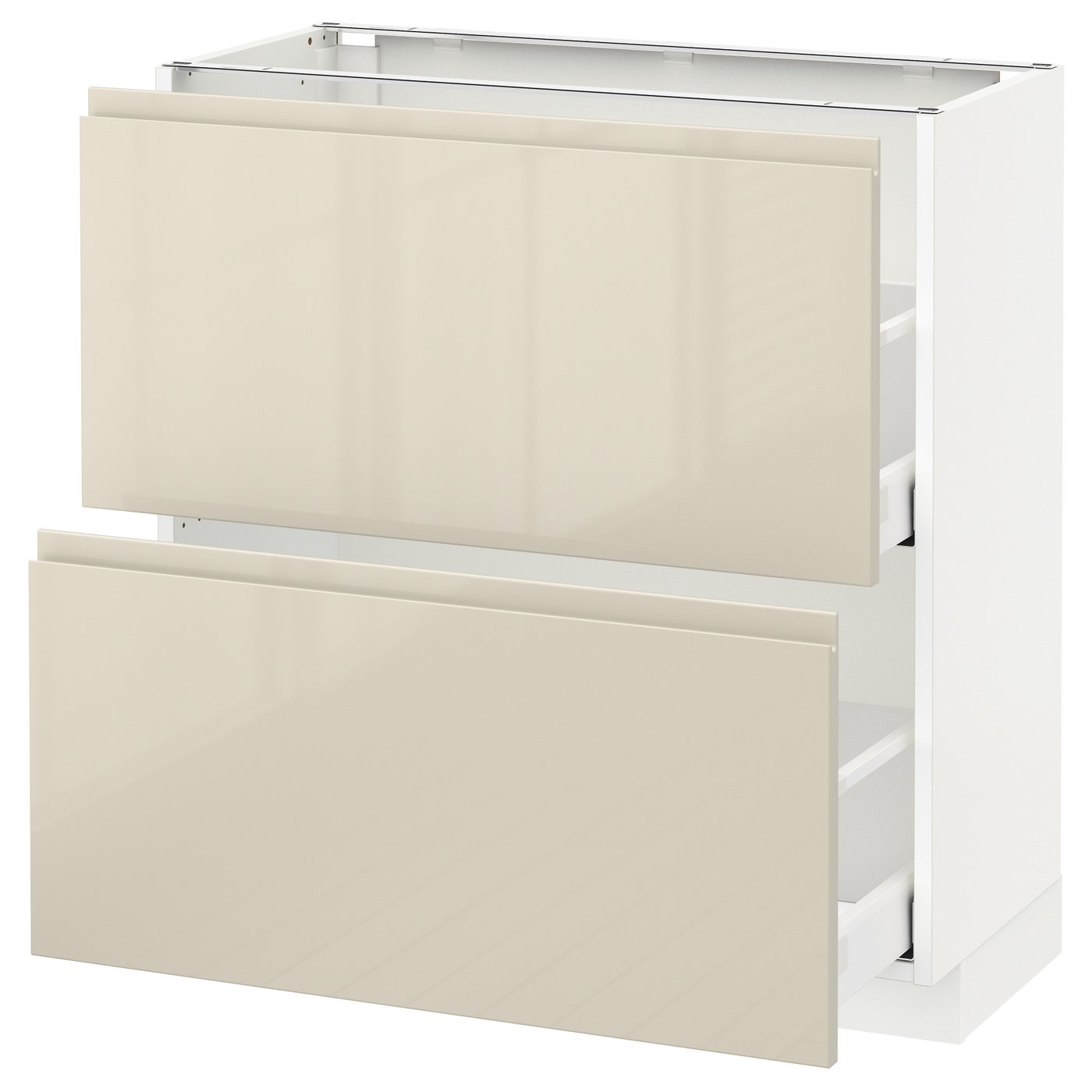 IKEA METOD Base cabinet with 2 drawers 80x37 cm MAXIMERA white/VOXTORP High-gloss light beige
