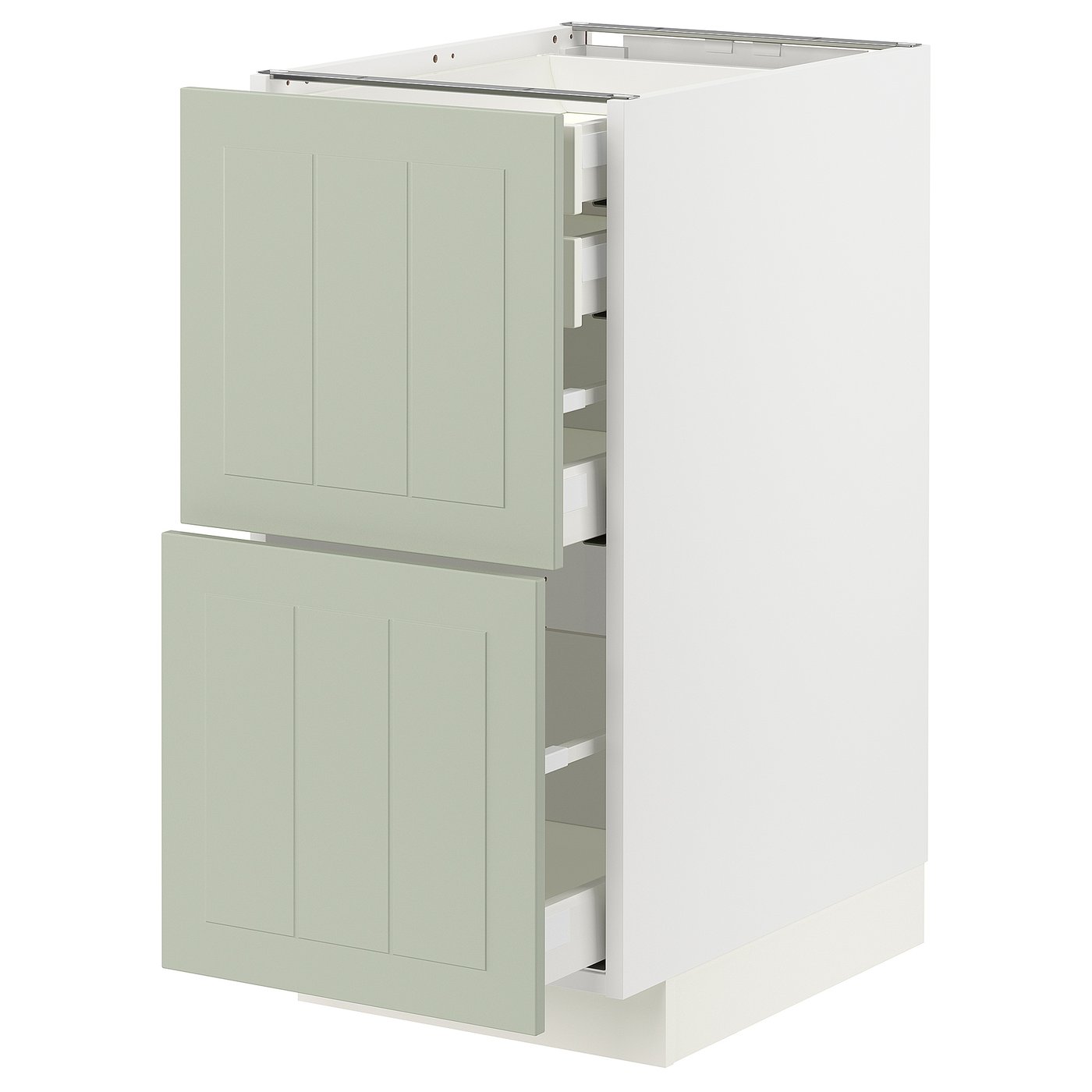 IKEA METOD Base cabinet with 2 fronts, 2 low, 1 medium and 1 high drawer 40x60 cm MAXIMERA white/STENSUND light green