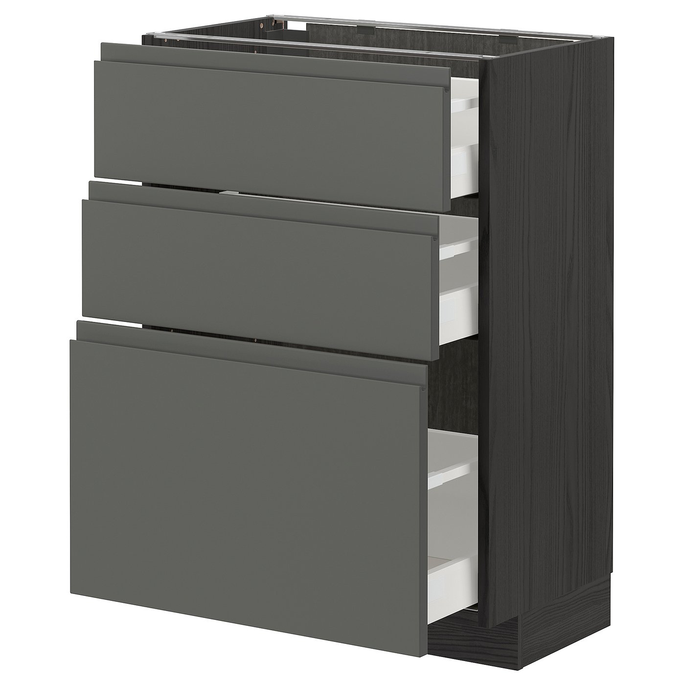 IKEA METOD Base cabinet with 3 drawers 60x37 cm MAXIMERA black/VOXTORP dark grey