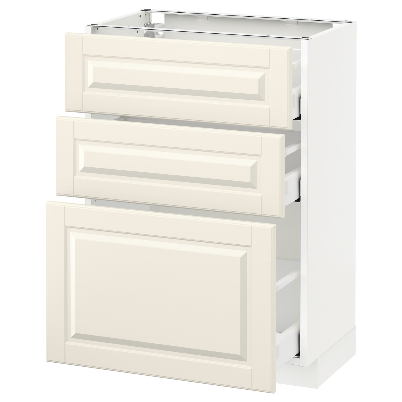 IKEA METOD Base cabinet with 3 drawers 60x37 cm MAXIMERA white/BODBYN off-white