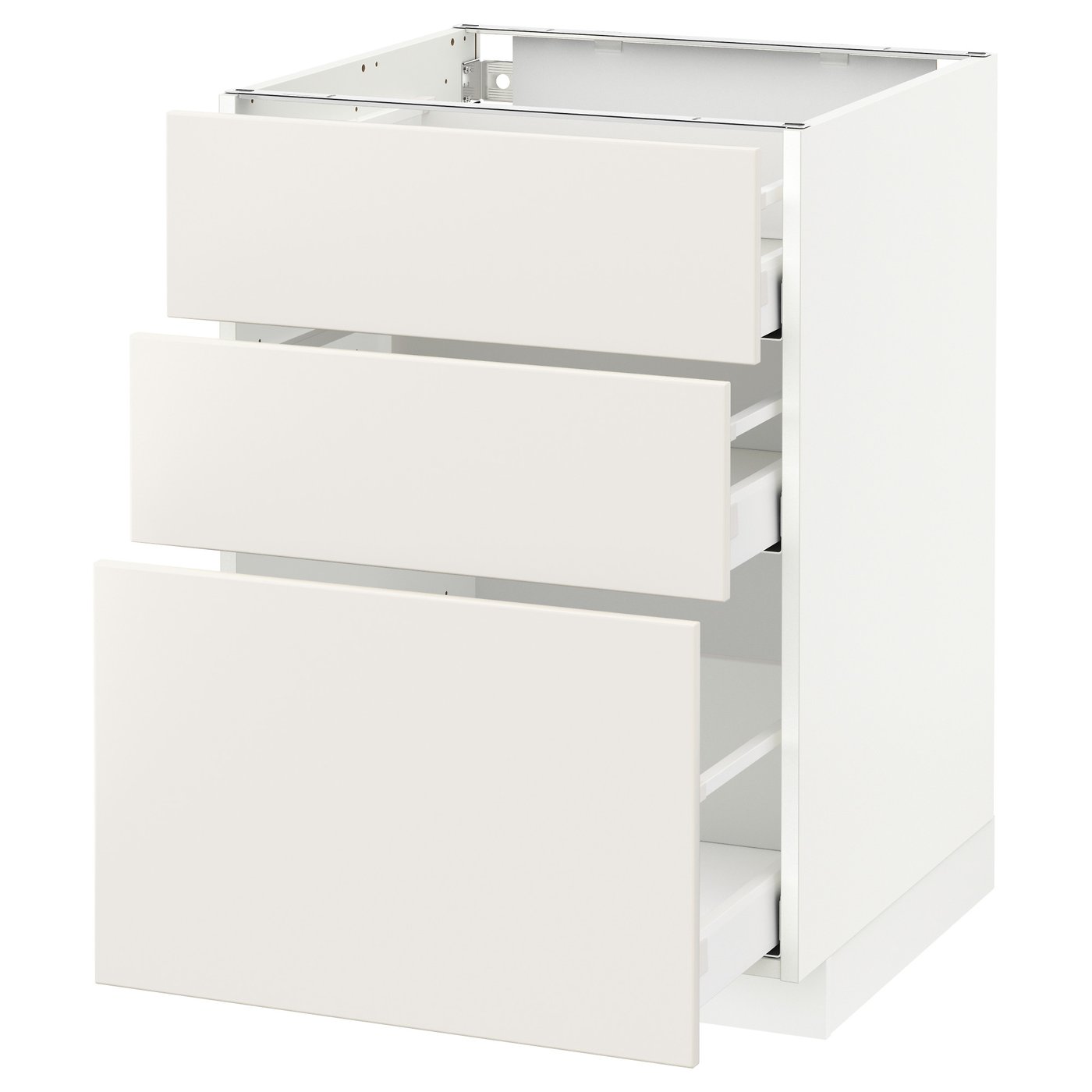 IKEA METOD Base cabinet with 3 drawers 60x60 cm MAXIMERA white/VEDDINGE white
