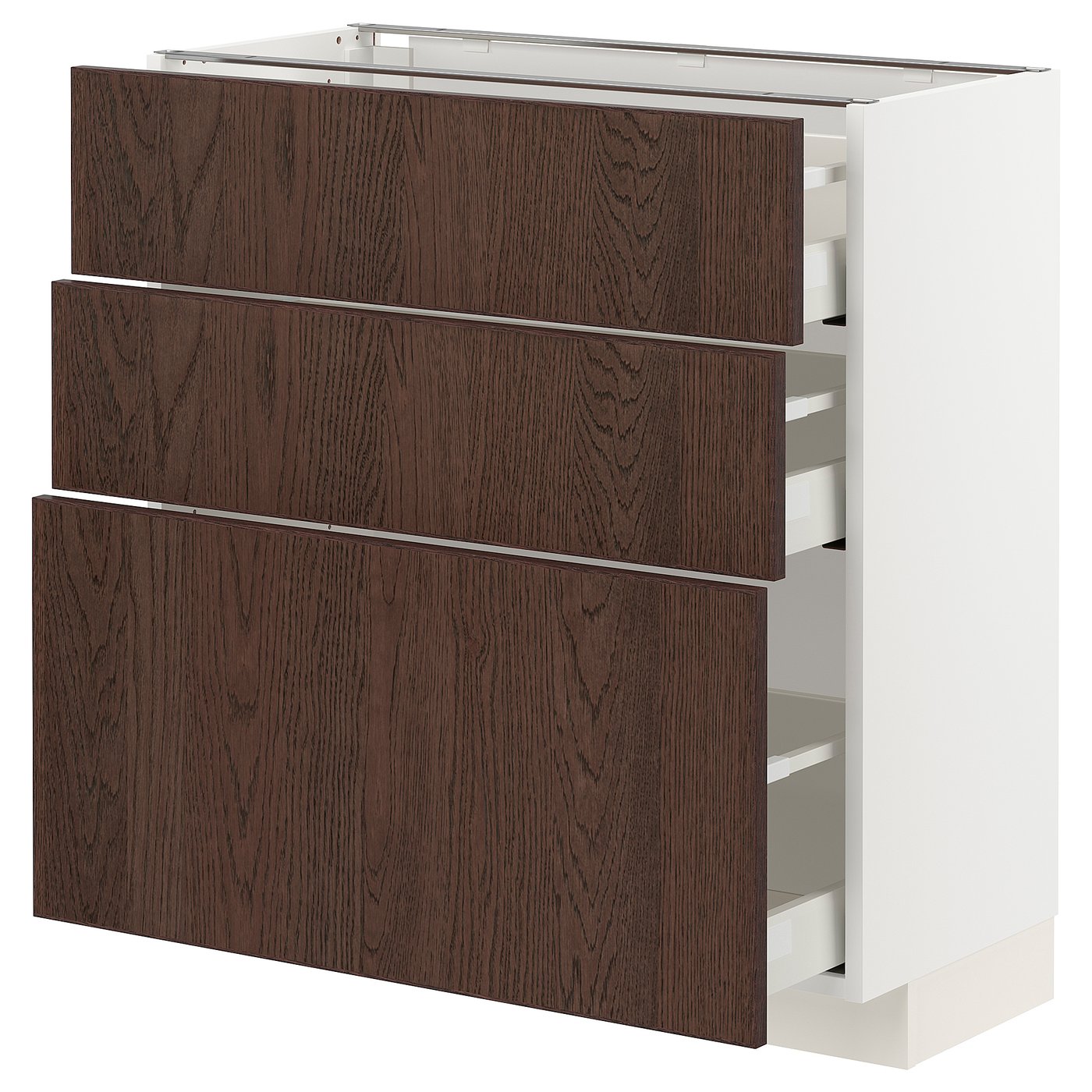 IKEA METOD Base cabinet with 3 drawers 80x37 cm MAXIMERA white/SINARP brown — Compare Prices Across UAE Stores | DeserTracker