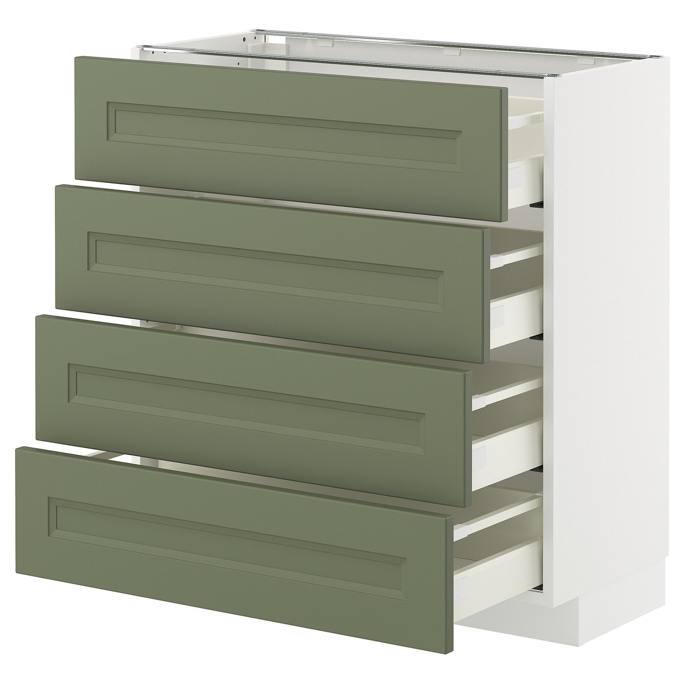 IKEA METOD Base cabinet with 4 drawers 80x37 cm MAXIMERA white/AXSTAD grey-green