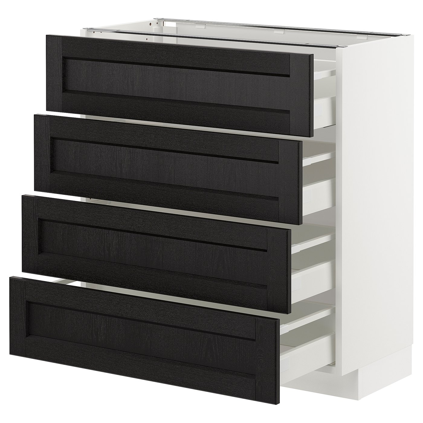 IKEA METOD Base cabinet with 4 fronts and 4 drawers 80x37 cm LERHYTTAN black stained/white
