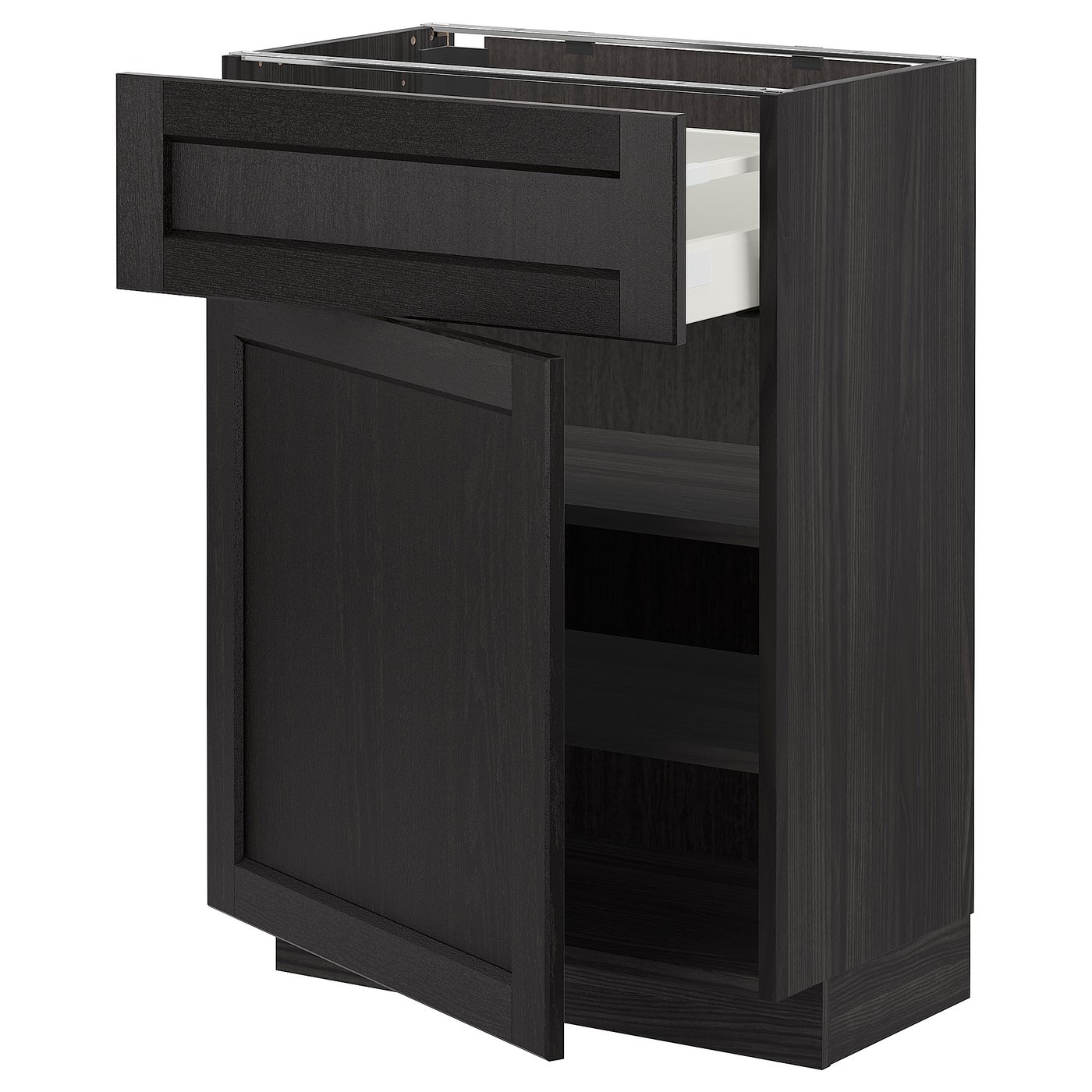 IKEA METOD Base cabinet with drawer and door 60x37 cm MAXIMERA black/LERHYTTAN black stained