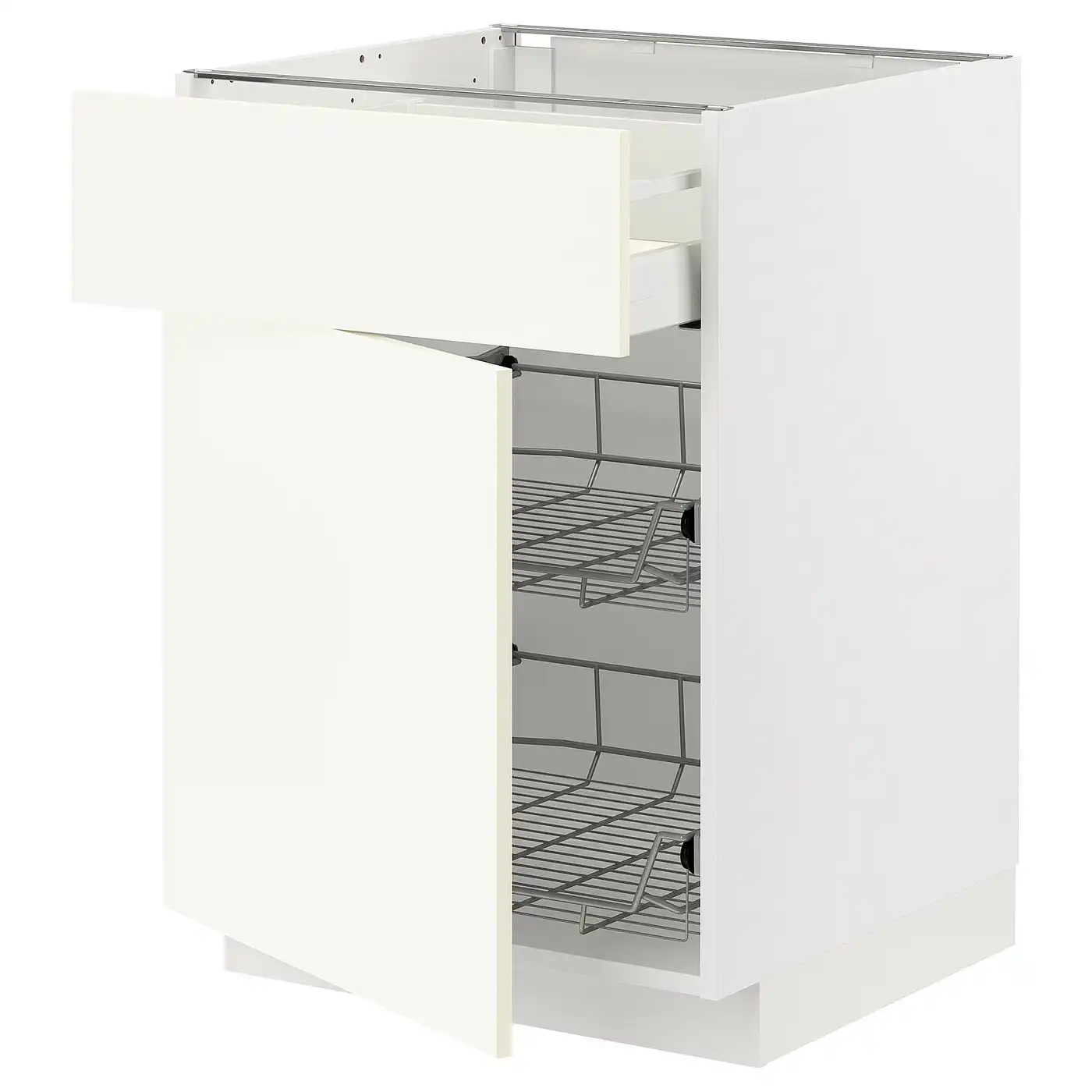 METOD / MAXIMERA Base cab w wire basket/drawer/door - white/Vallstena white 60x60 cm