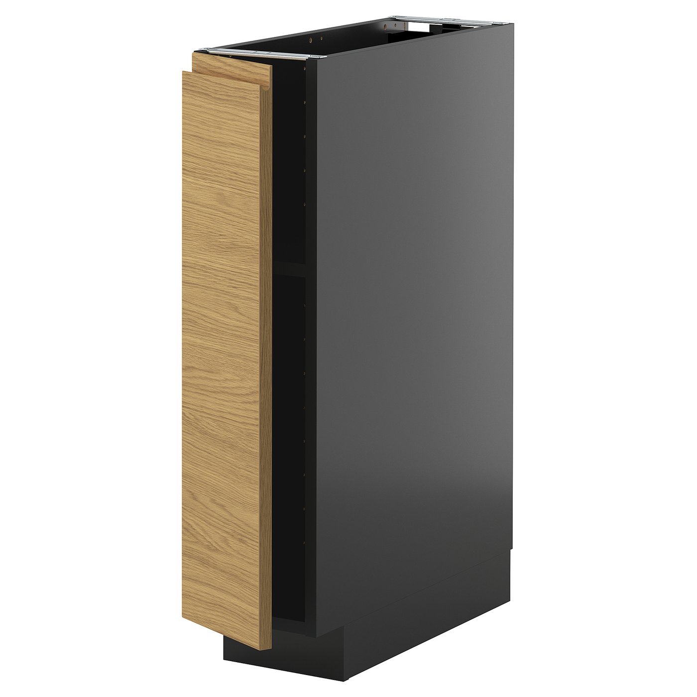 (1 product)METOD Base cabinet with shelves - black-grey/Voxtorp oak effect 20x60 cm