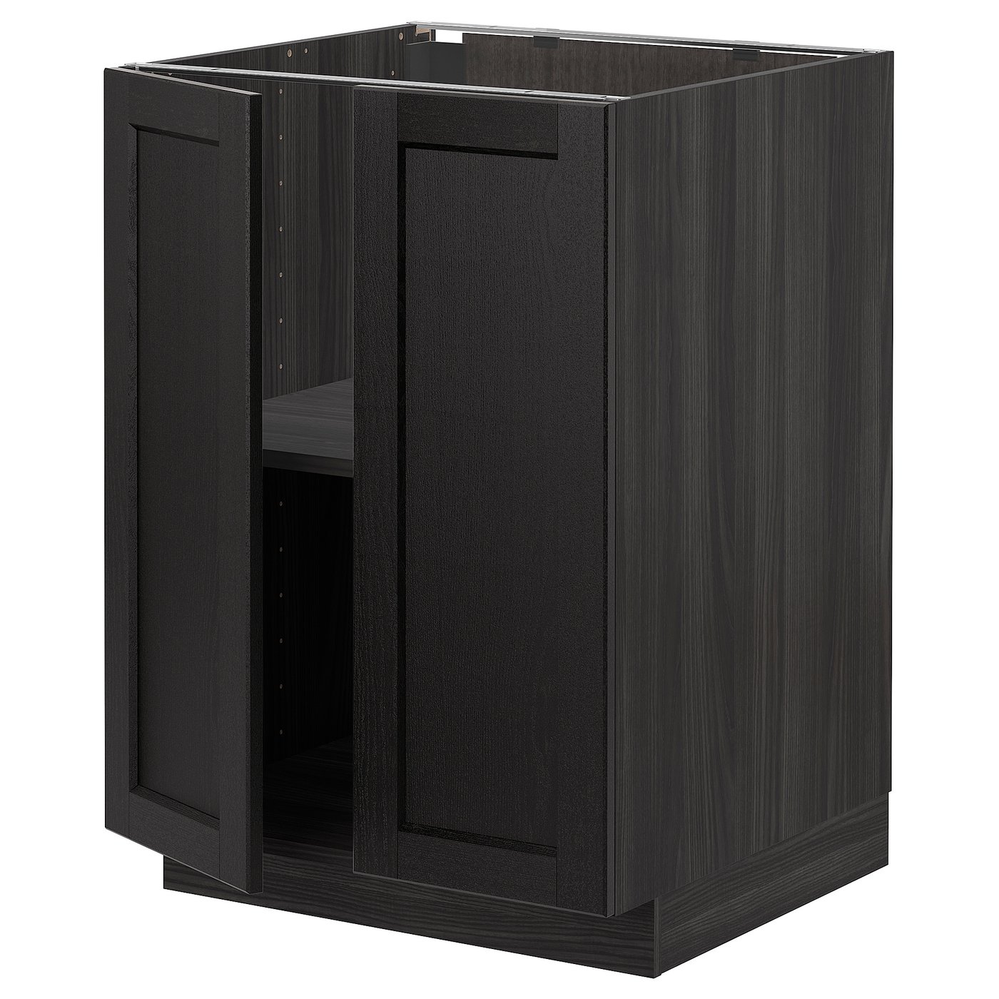 IKEA METOD Base cabinet with shelves and 2 doors 60x60 cm LERHYTTAN black stained/white