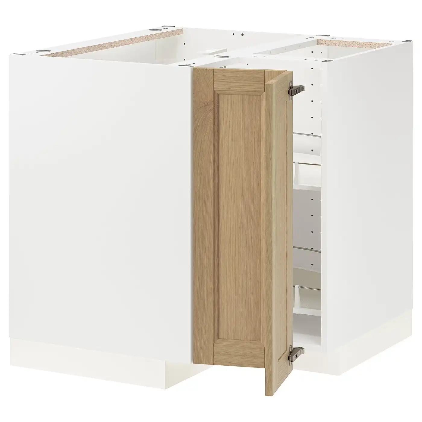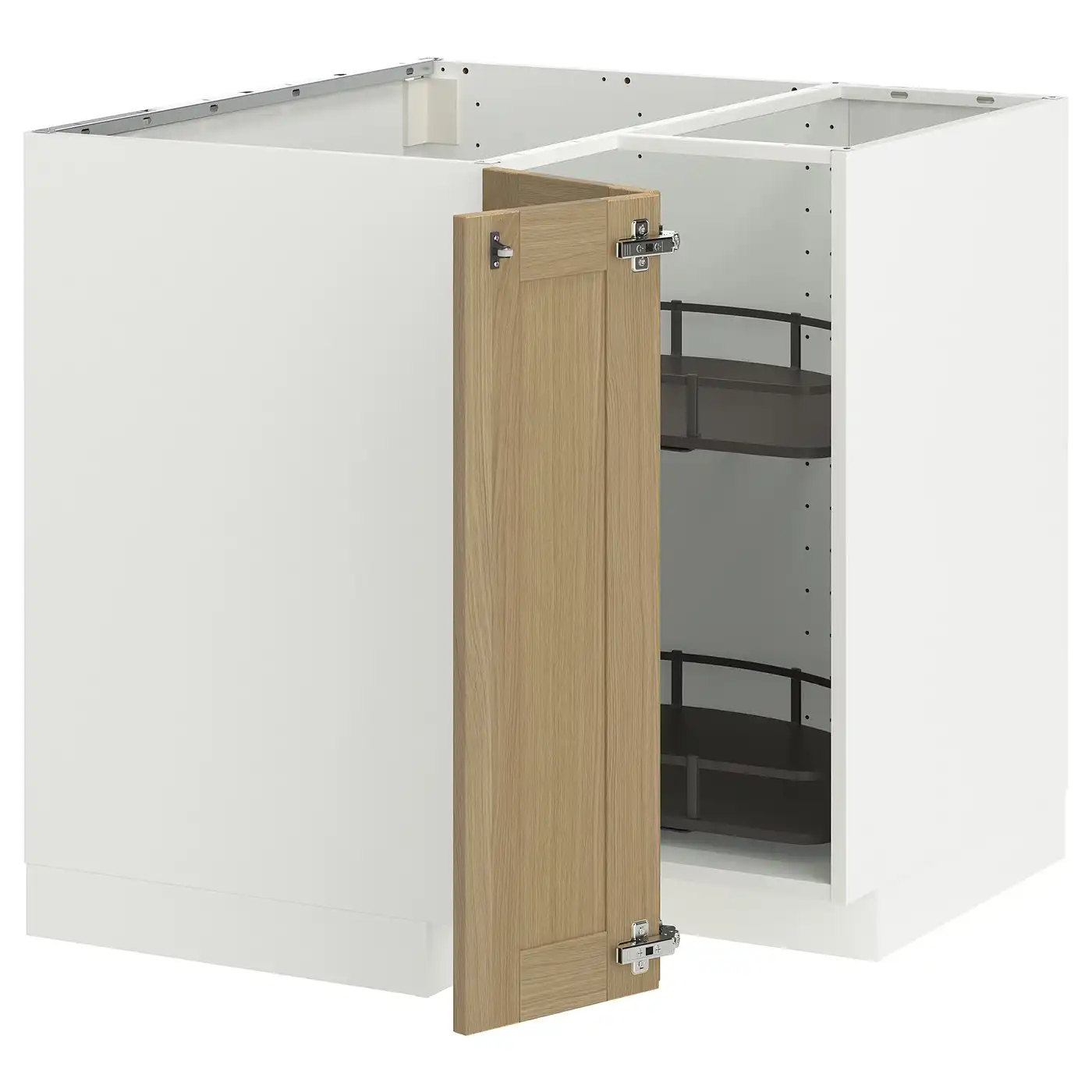 IKEA METOD Corner base cabinet with carousel 88x88 cm white/VEDHAMN oak