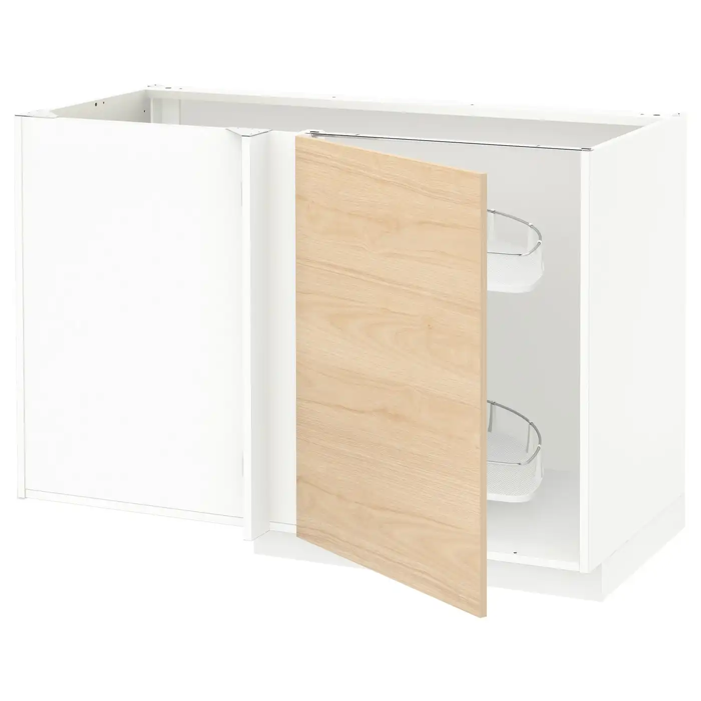 (8 products)METOD Corner base cab w pull-out fitting - white/Askersund light ash effect 128x68 cm