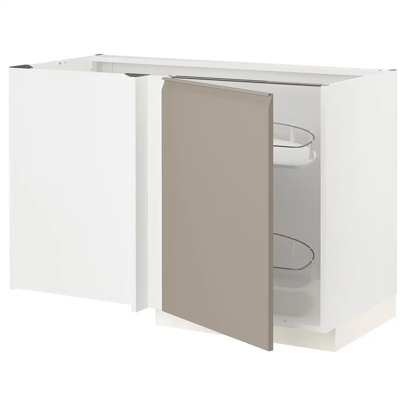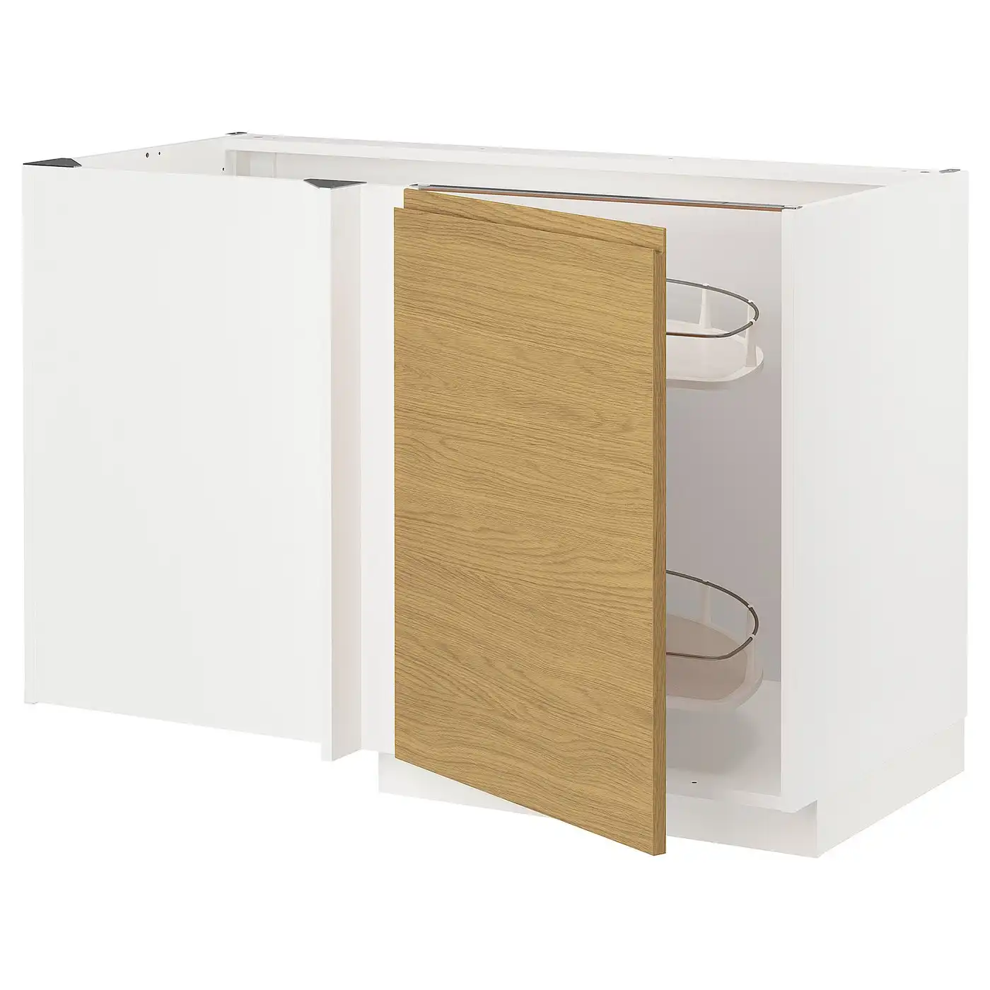 IKEA METOD Corner base cabinet with pull-out interior fittings 128x68 cm MAXIMERA white/VOXTORP oak effect