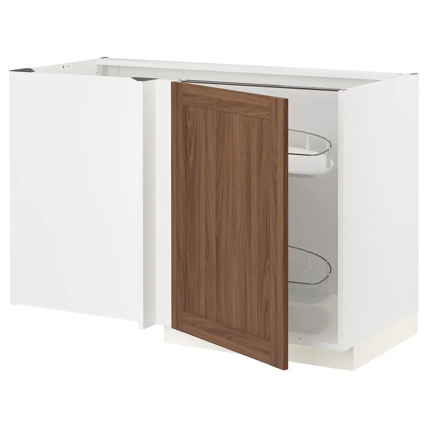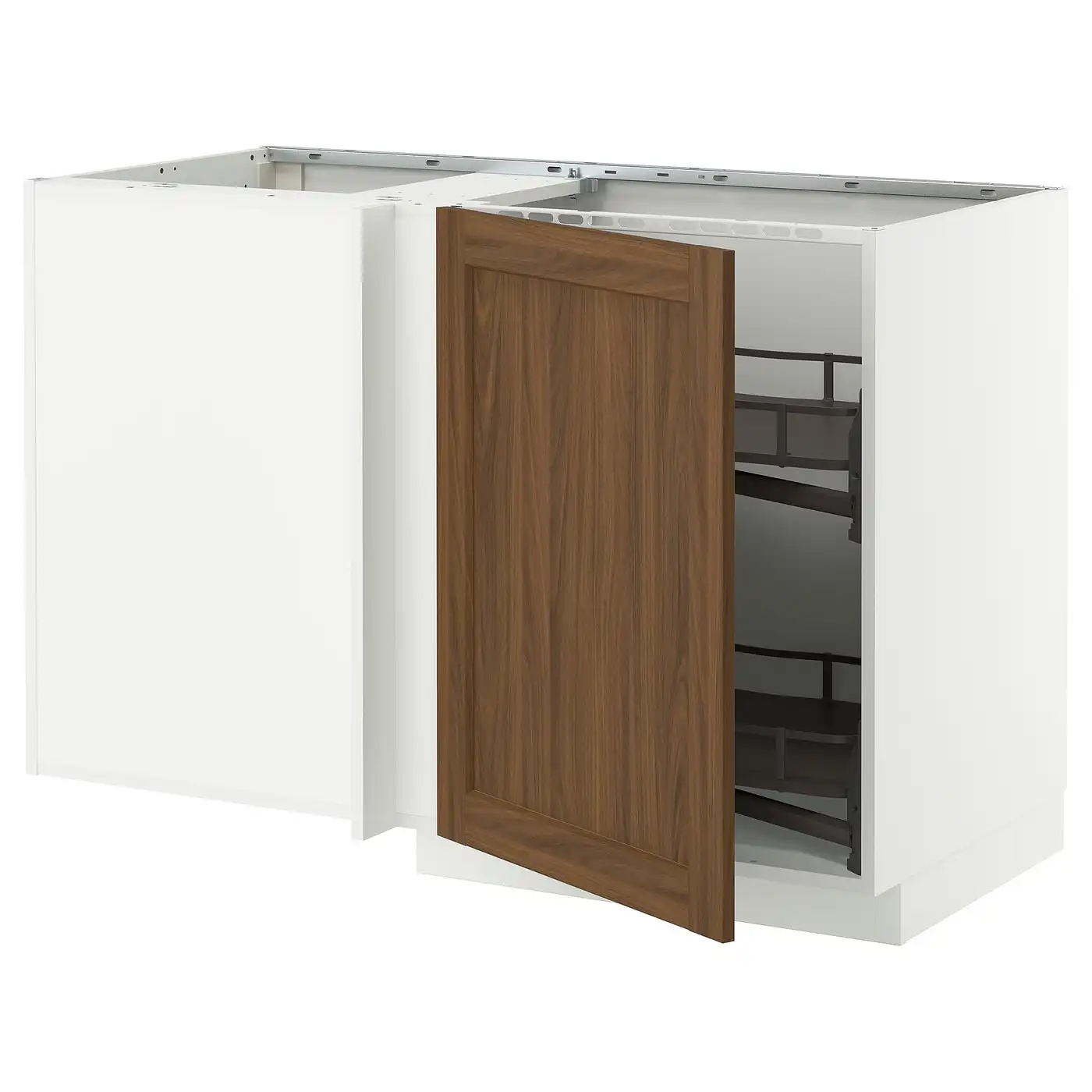 METOD Corner base cab w pull-out fitting - white/Enköping brown walnut effect 128x68 cm