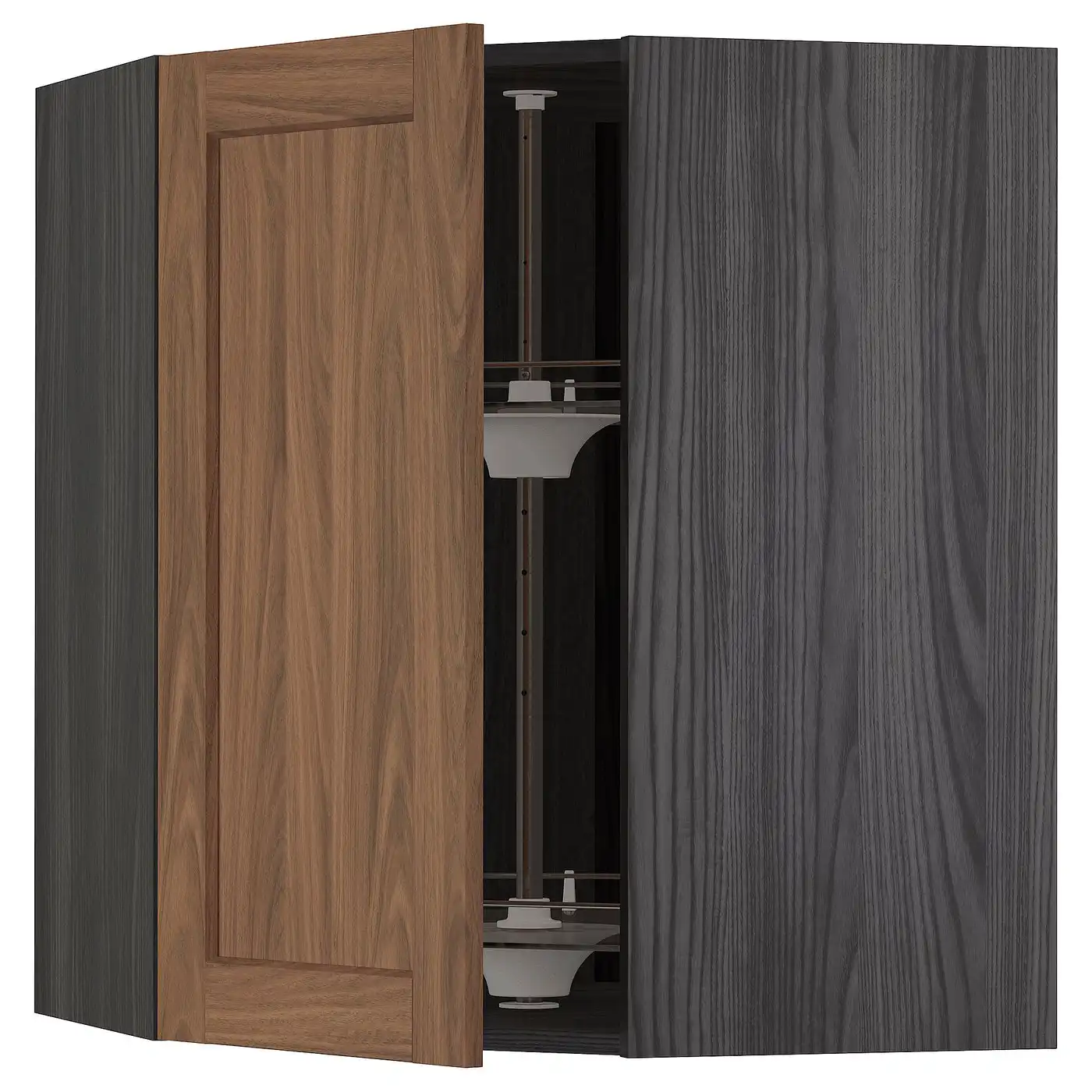 METOD Corner wall cabinet with carousel - black Enköping/brown walnut effect 68x80 cm