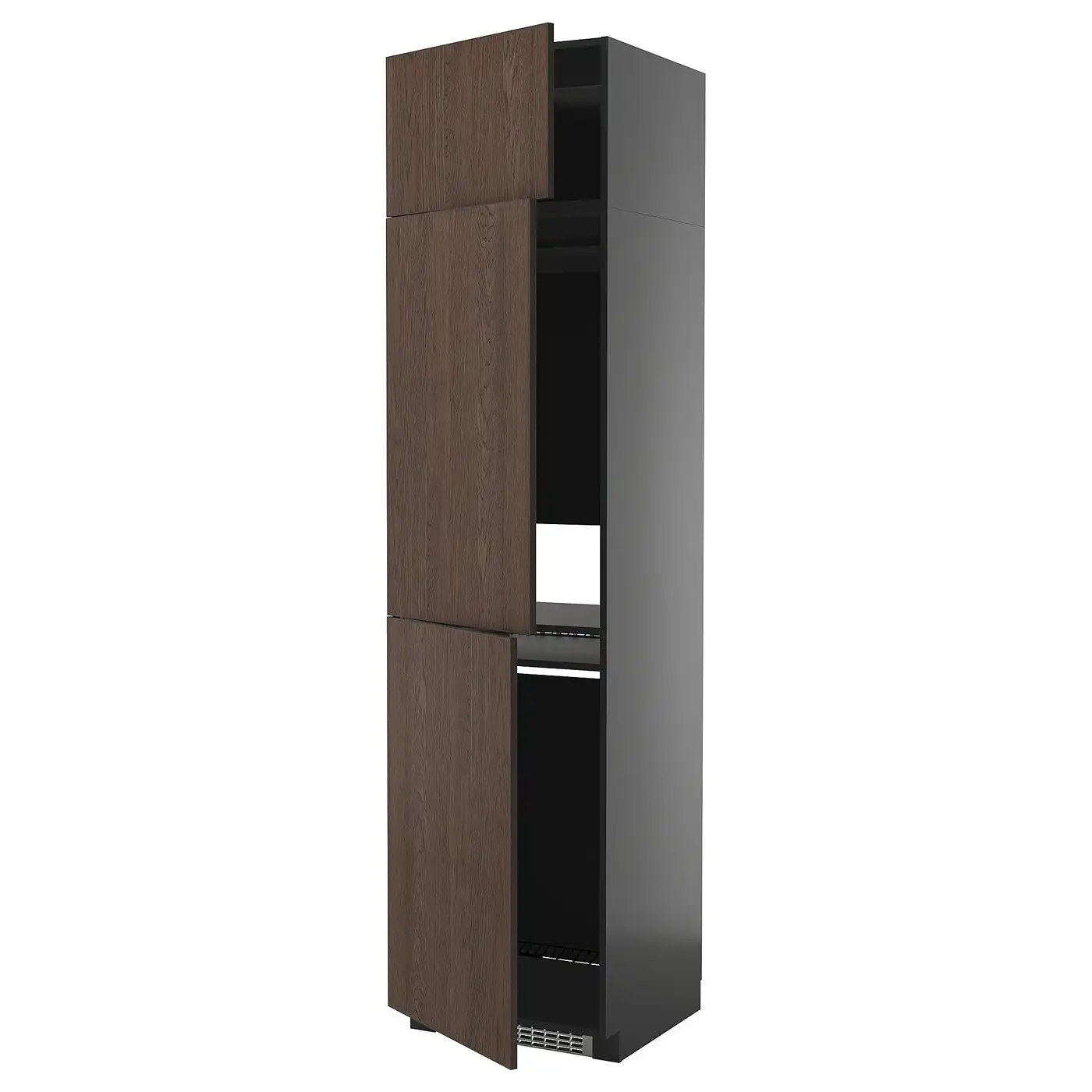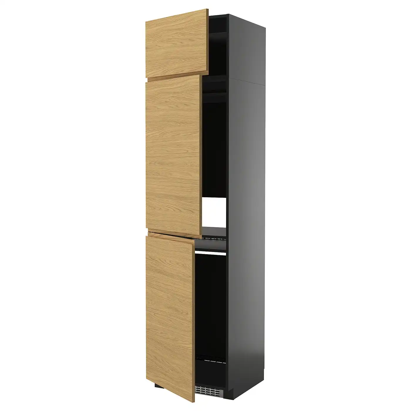 IKEA METOD High cabinet for fridge/freezer with 3 doors 60x60x240 cm black-grey/VOXTORP oak effect
