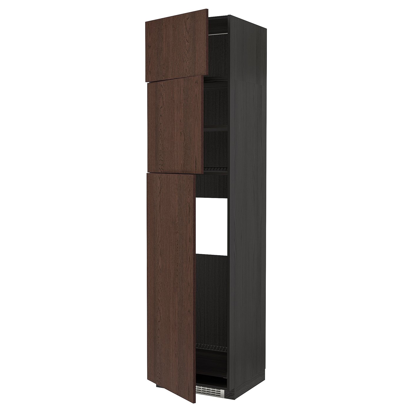 IKEA METOD High cabinet for fridge with 3 doors 60x60x240 cm black/SINARP brown