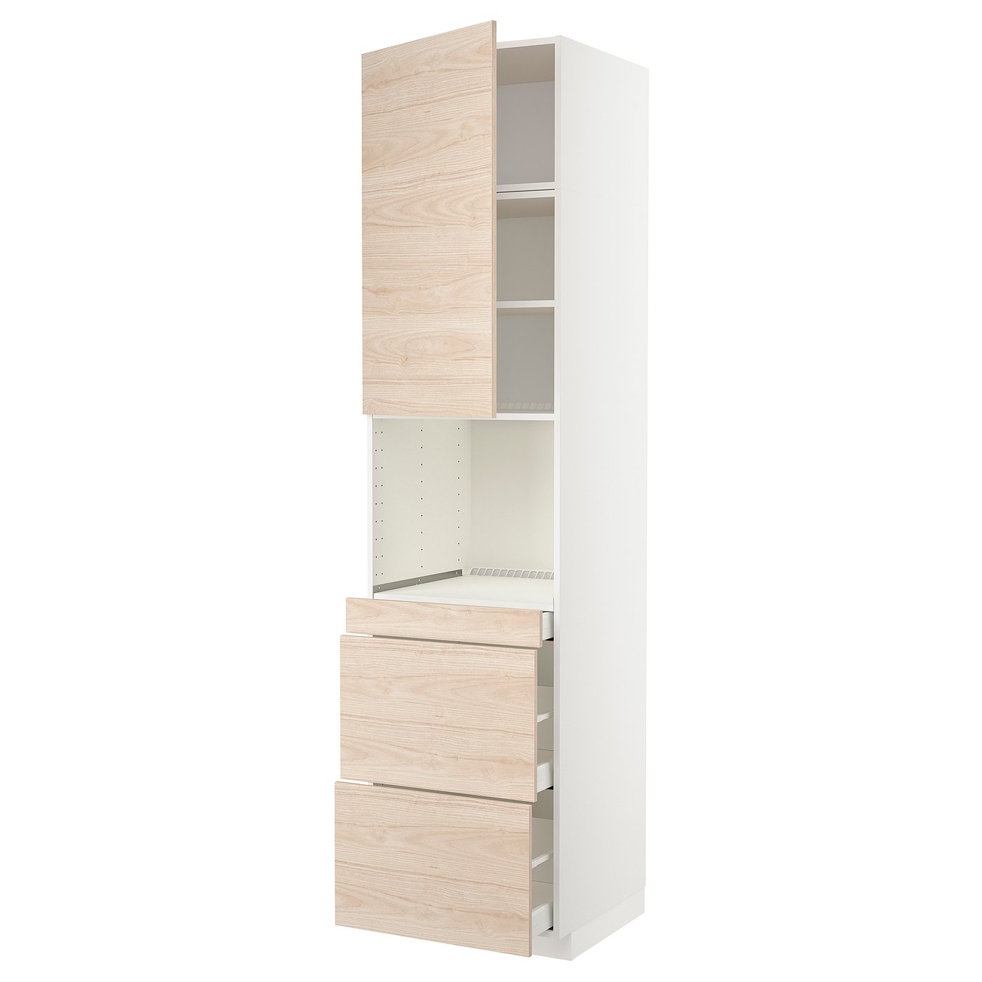 IKEA METOD High cabinet for microwave/combi oven with door and 3 drawers 60x60x240 cm MAXIMERA white/ASKERSUND light ash effect