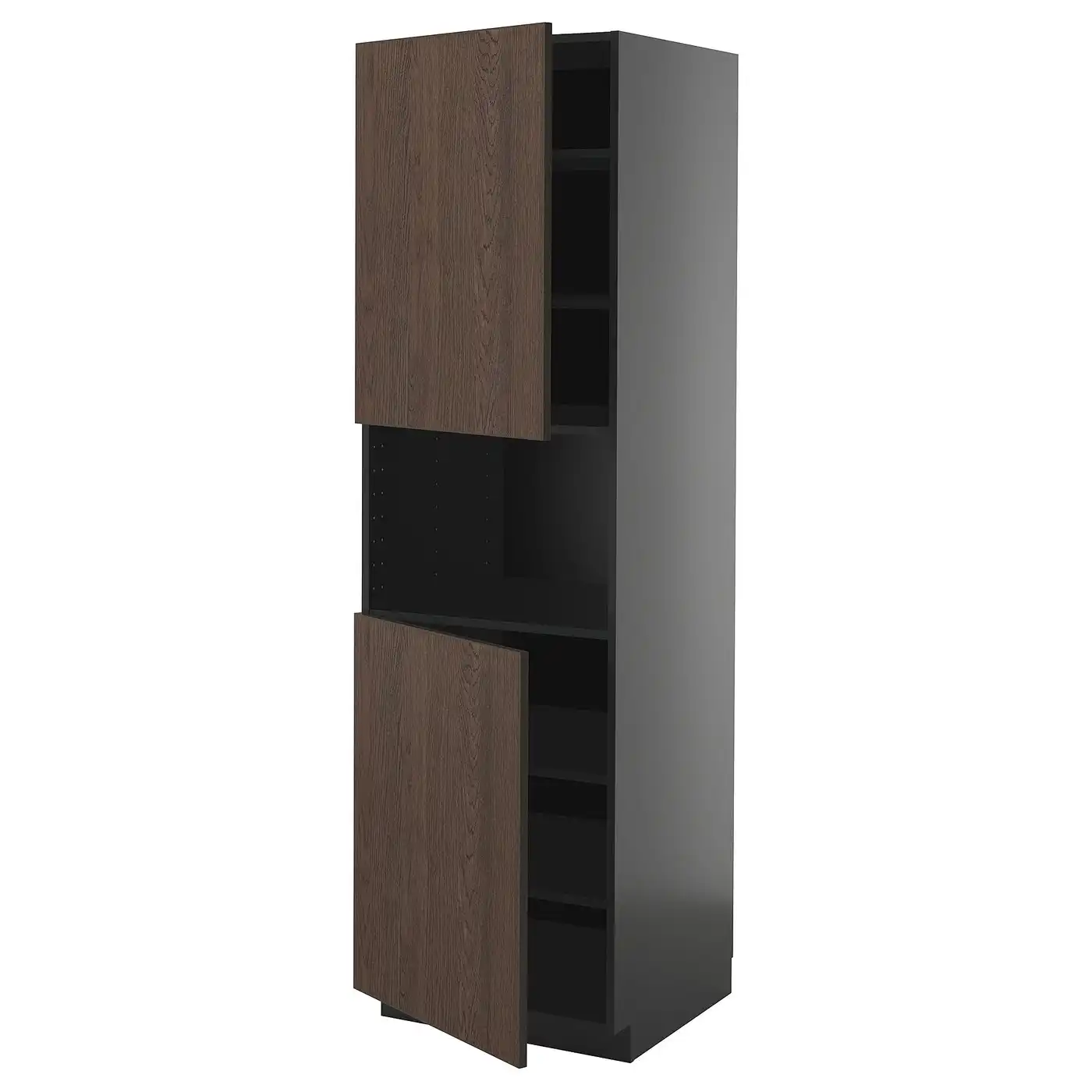 (3 products)METOD High cab f micro w 2 doors/shelves - black/Sinarp brown 60x60x200 cm