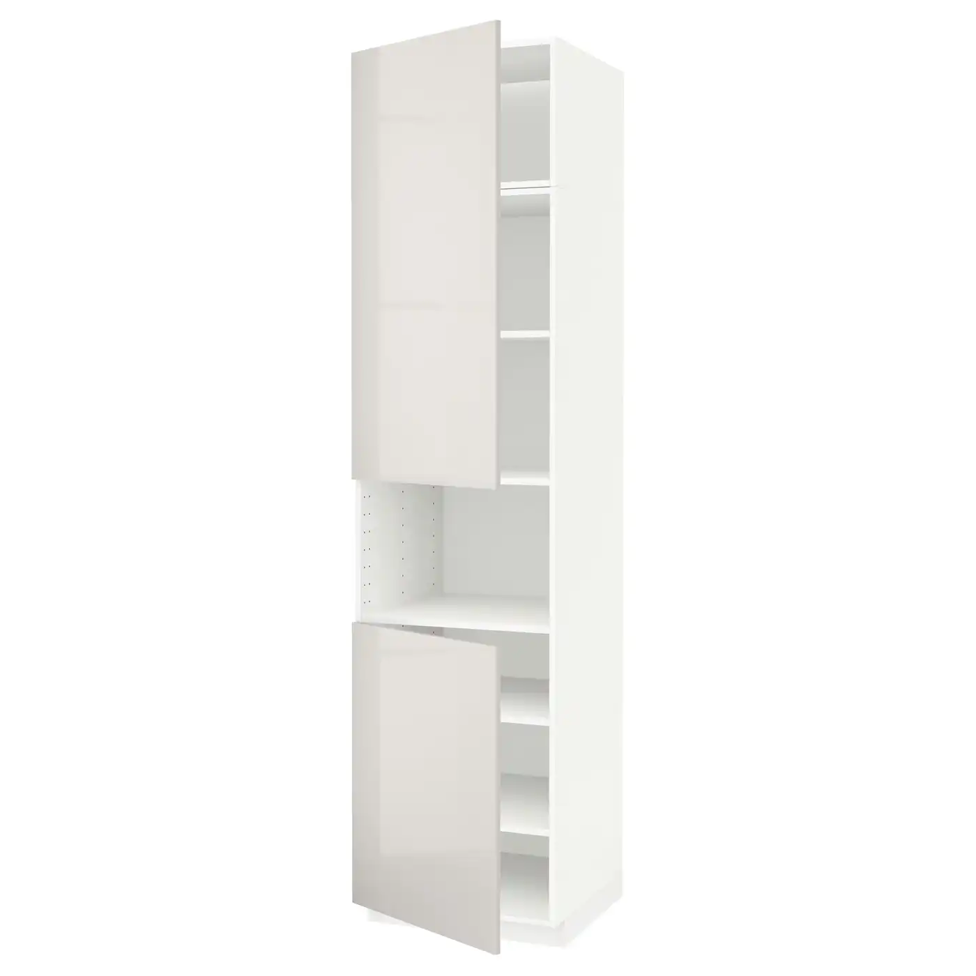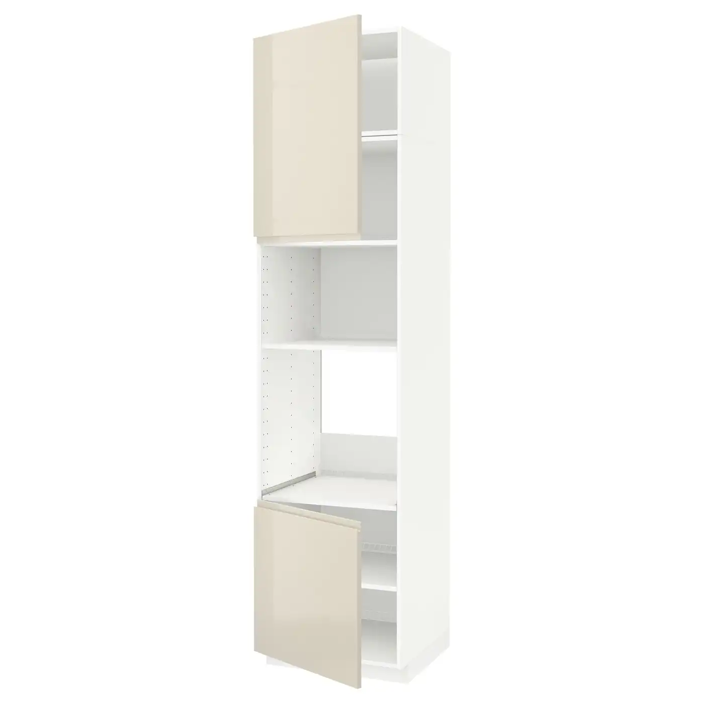 IKEA METOD High cabinet for microwave with 2 doors/shelves 60x60x240 cm white/VOXTORP High-gloss light beige