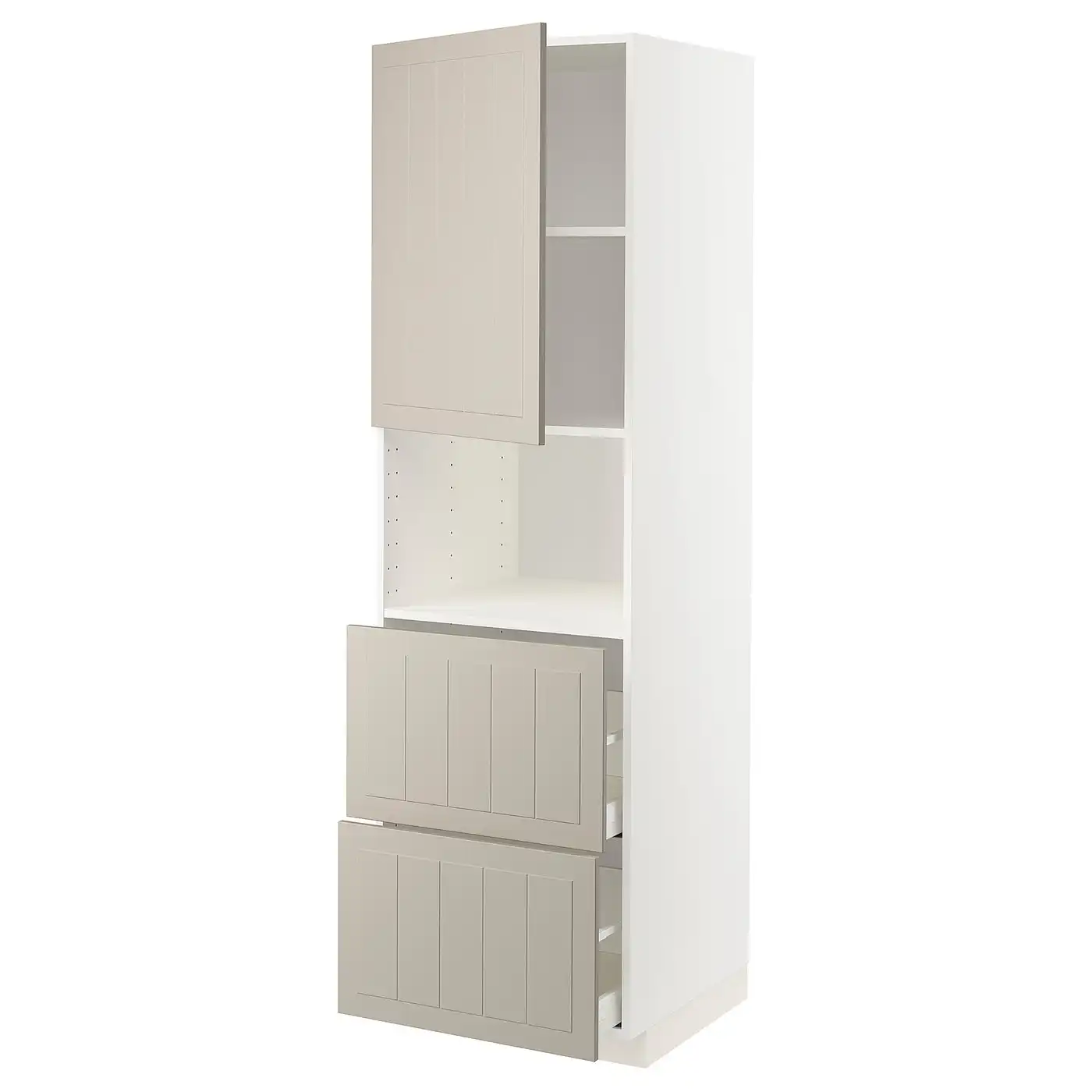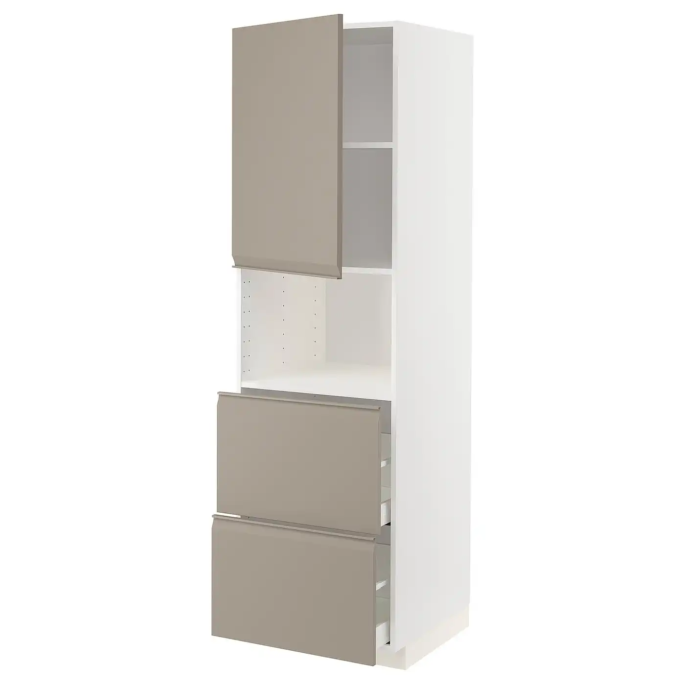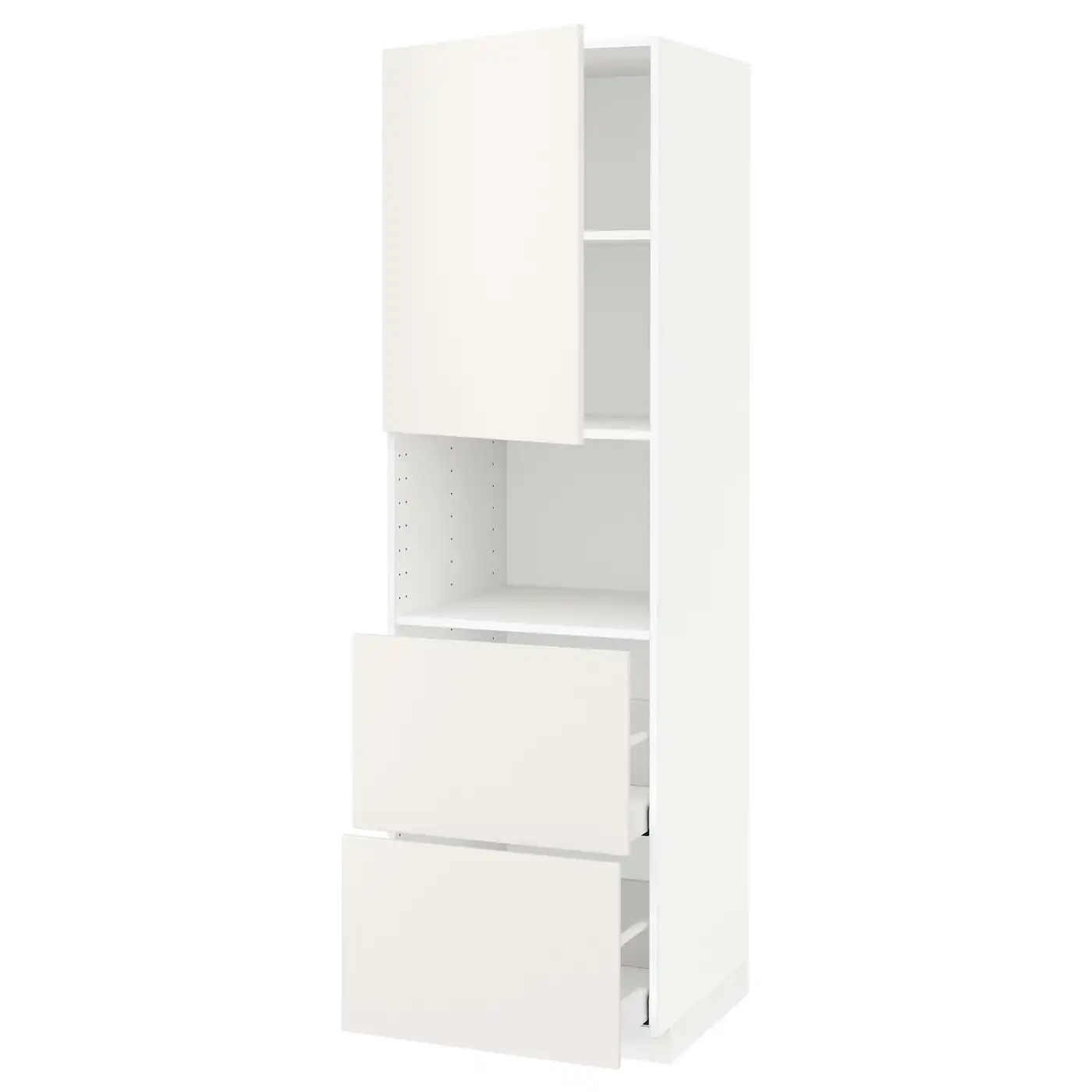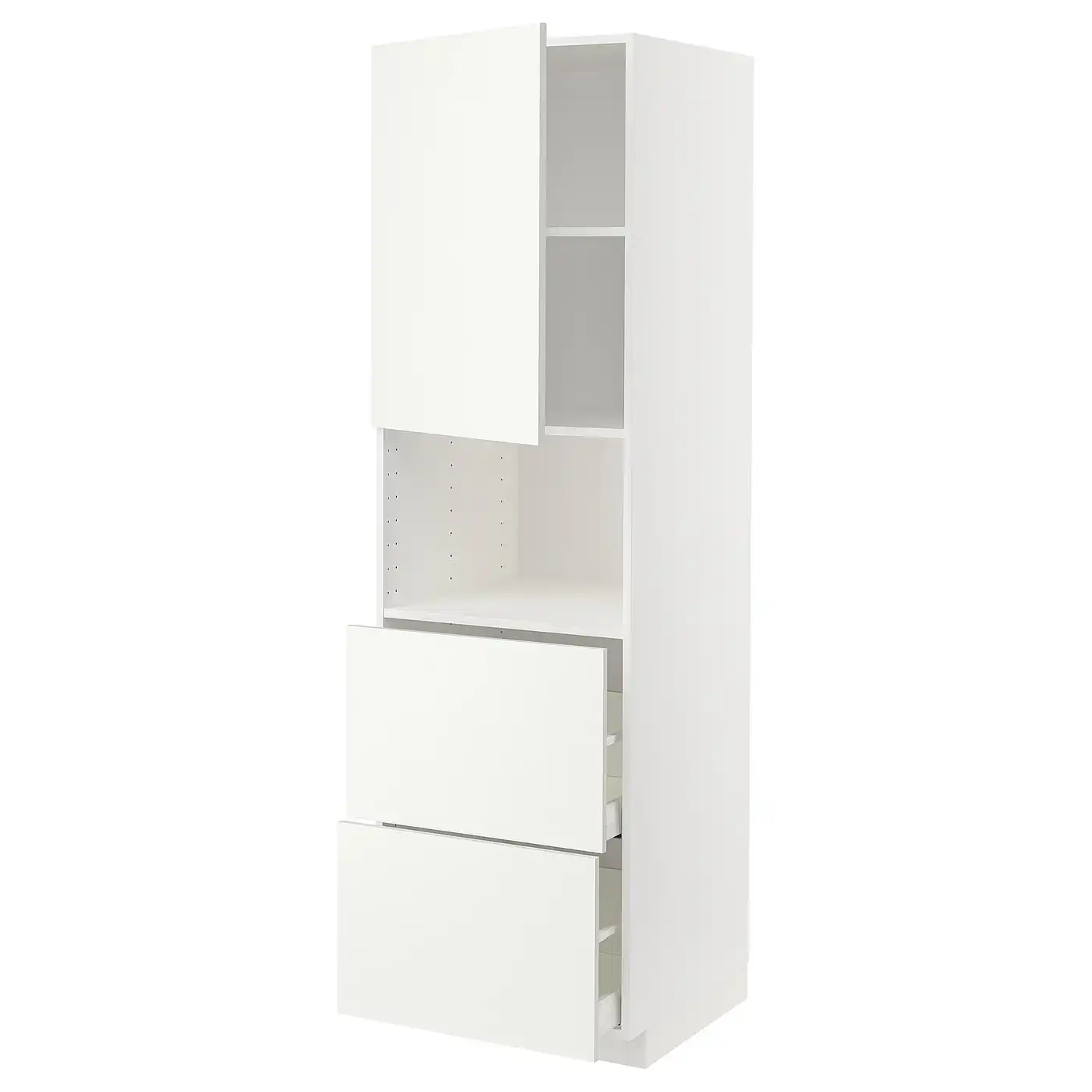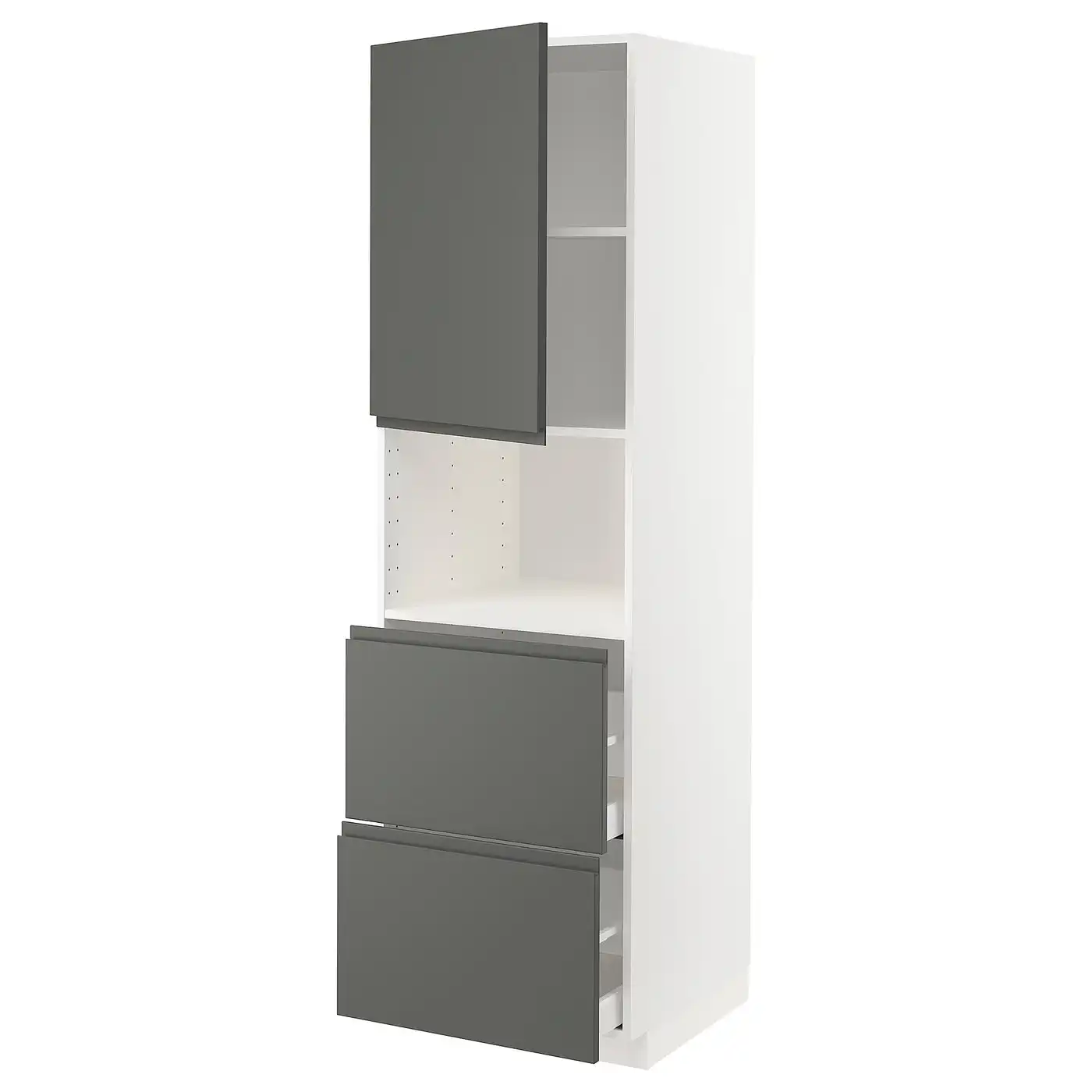 IKEA METOD High cabinet for microwave with door and 2 drawers 60x60x200 cm MAXIMERA white/VOXTORP dark grey